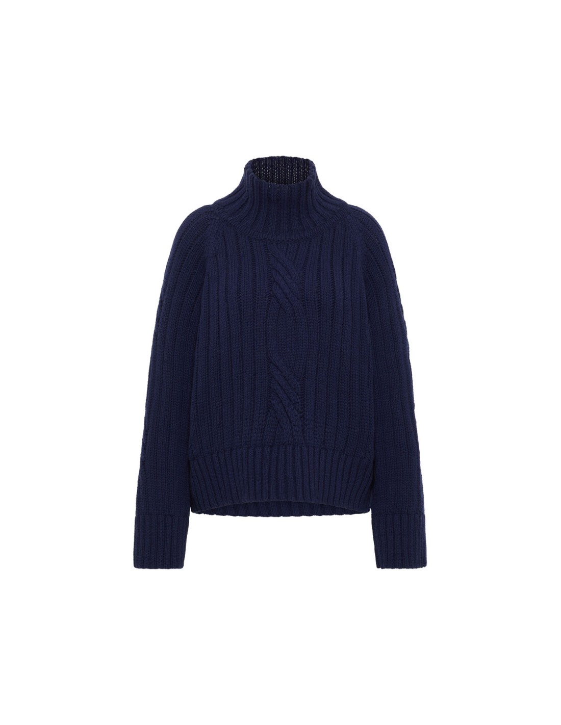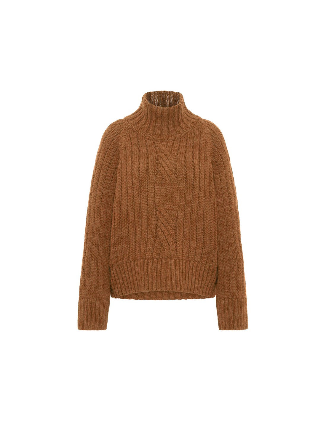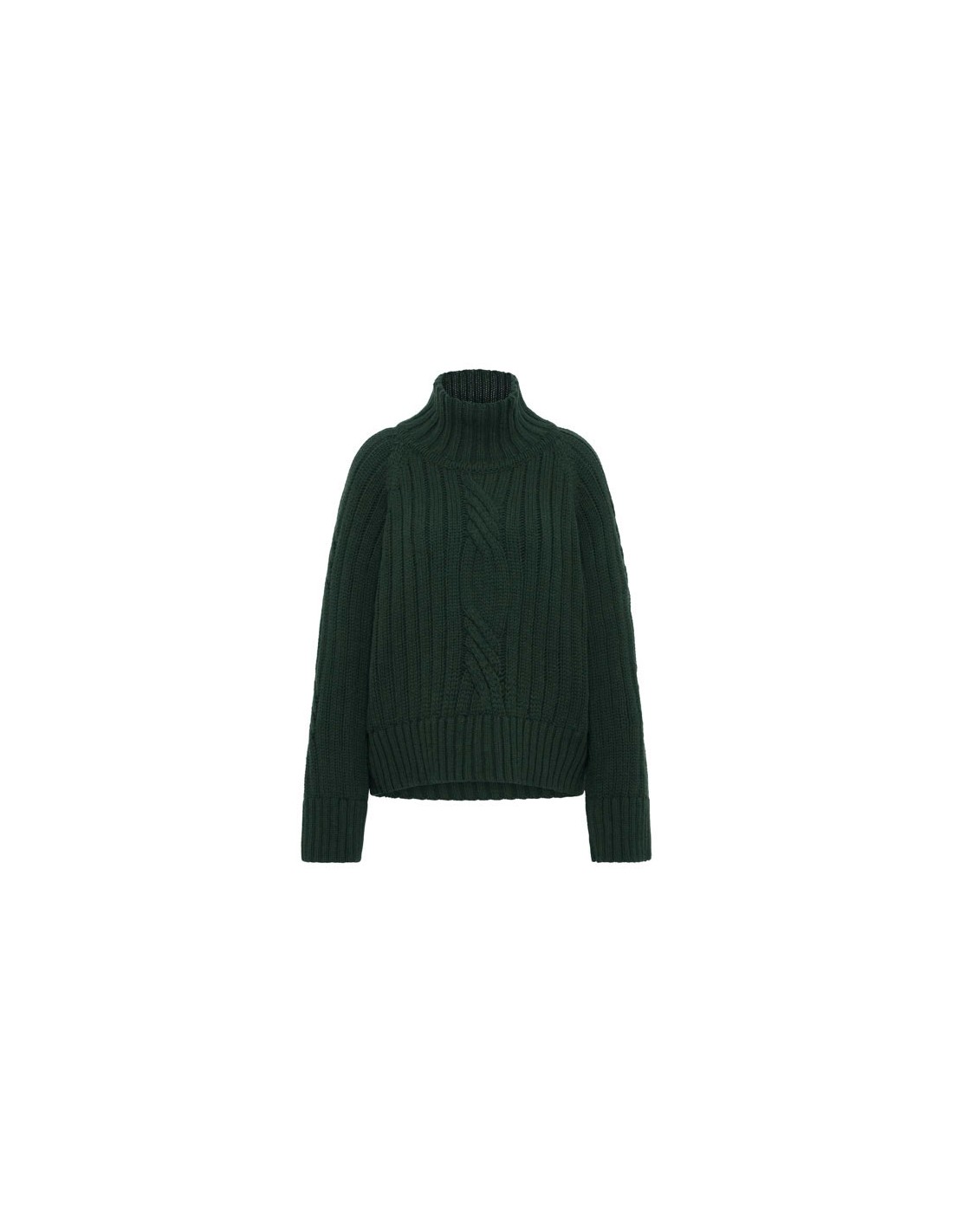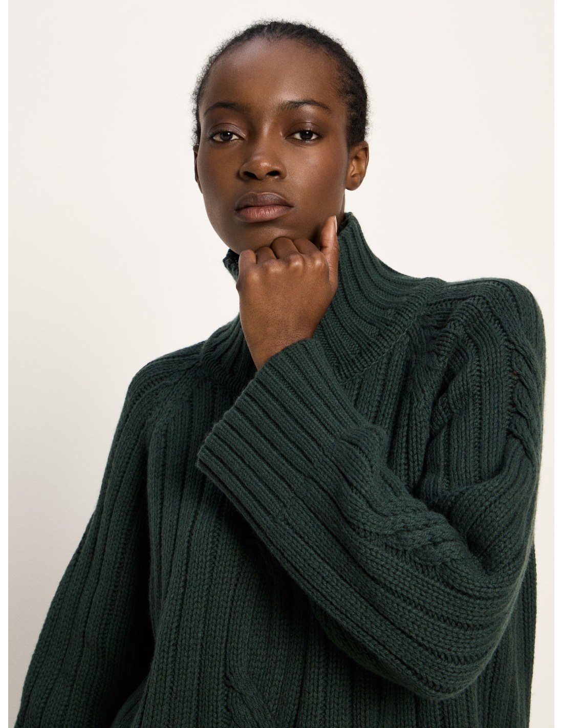 Un maglione che unisce tradizione e modernità: la lavorazione a coste con motivo a treccia richiama la maglieria classica, mentre il taglio oversize, il collo alto e le spalle scese donano un carattere attuale, morbido e rilassato. È quel tipo di capo che avvolge senza appesantire, pensato per offrire comfort, calore e libertà di movimento.
