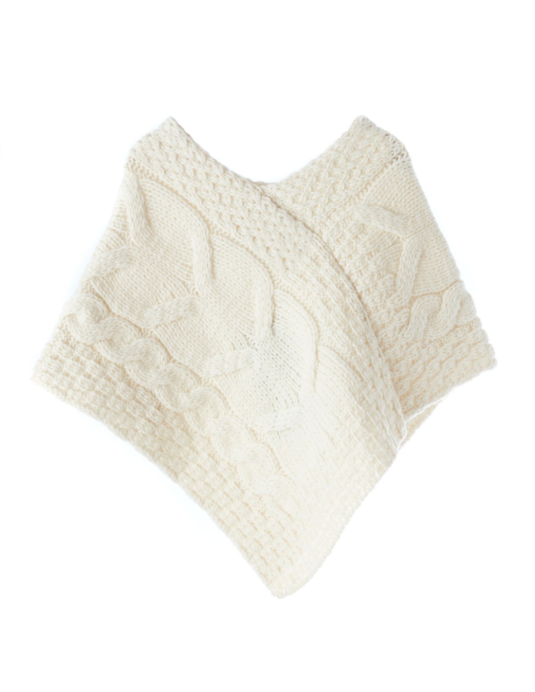 Meraviglioso poncho bimbi in pura Lana Vergine Irlandese con scollo a V e ricchissima lavorazione a trecce.