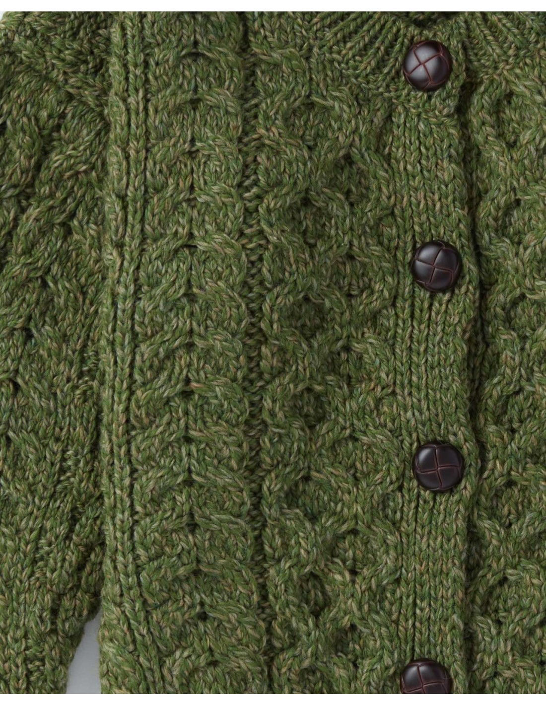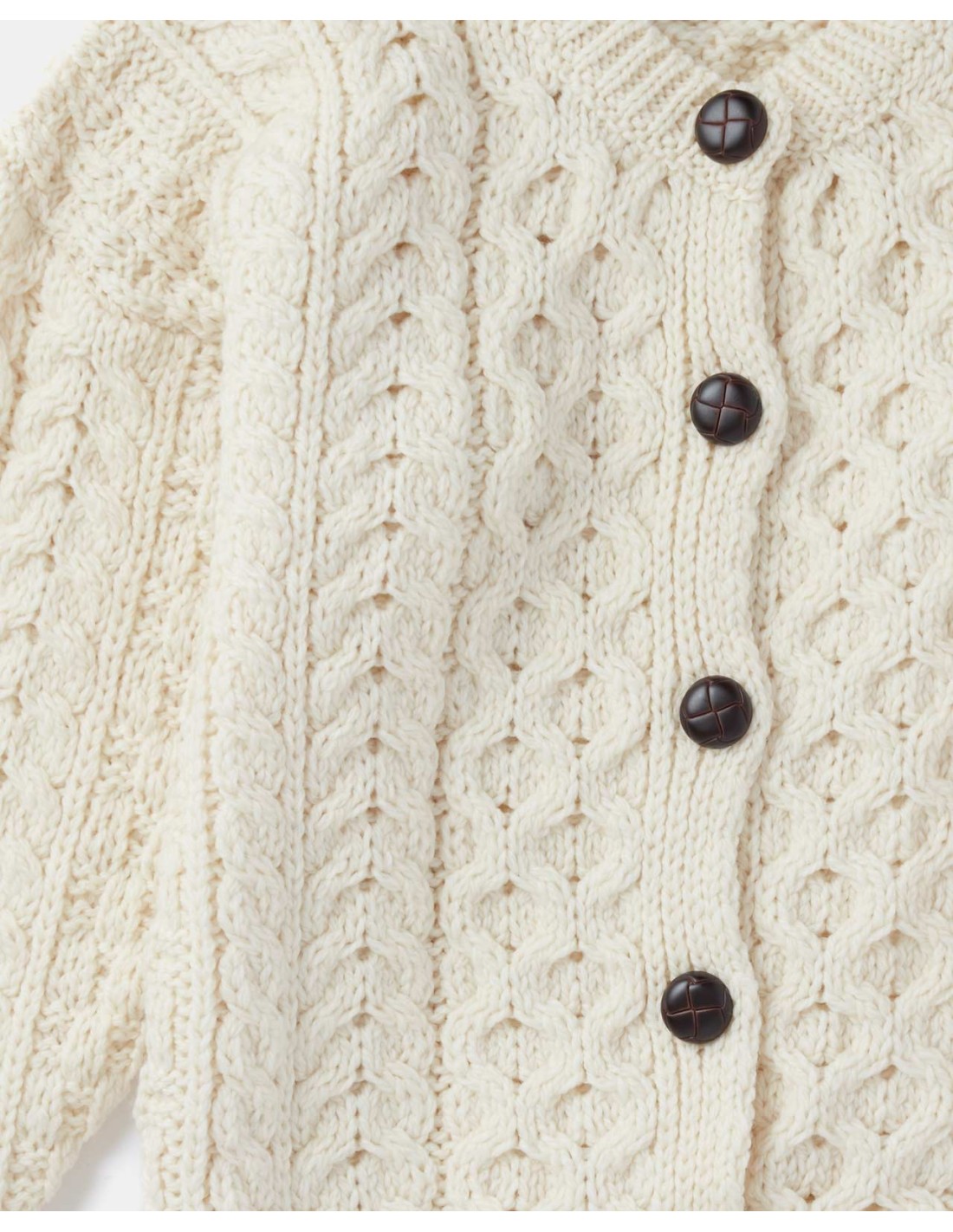 Che si tratti del punto a treccia che augura buona fortuna o il punto a nido d'ape che simboleggia una ricompensa per il duro lavoro, la maglieria Aran ci lega alla terra, ai costumi, all'artigianato e al patrimonio storico Irlandese.