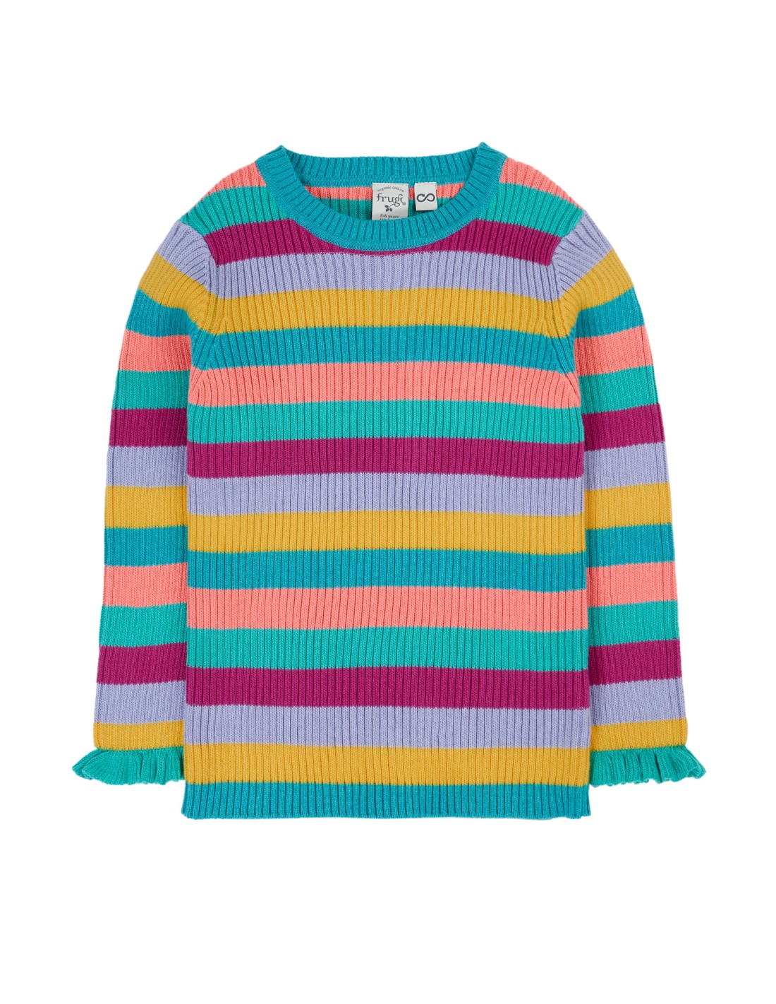 La lavorazione a costine rende il tessuto elastico e durevole, perfetto per seguire ogni movimento e resistere a lavaggi frequenti senza perdere forma o morbidezza. I dettagli arricciati sui polsini aggiungono un tocco allegro e giocoso, mentre le tonalità vivaci portano energia e buonumore in ogni stagione.
