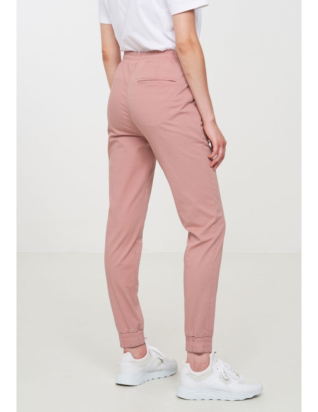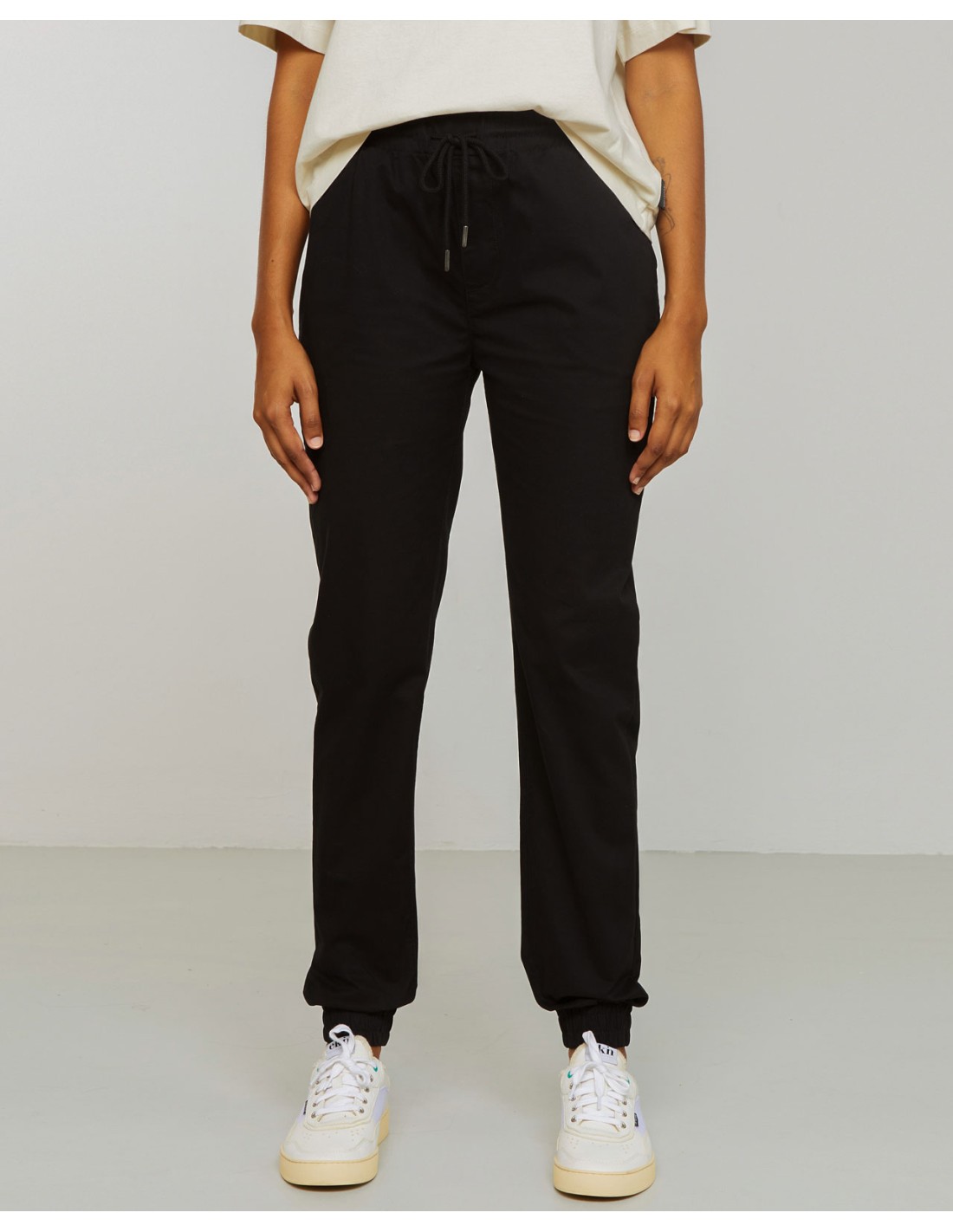La vestibilità è comoda e rilassata: la gamba è leggermente affusolata, per accompagnare il corpo con naturalezza, con polsino sul fondo. L’elastico in vita con coulisse rende questo pantalone donna estremamente pratico e adattabile, perfetto anche in gravidanza. Le tasche laterali e le tasche posteriori a filetto completano il design minimal e funzionale.