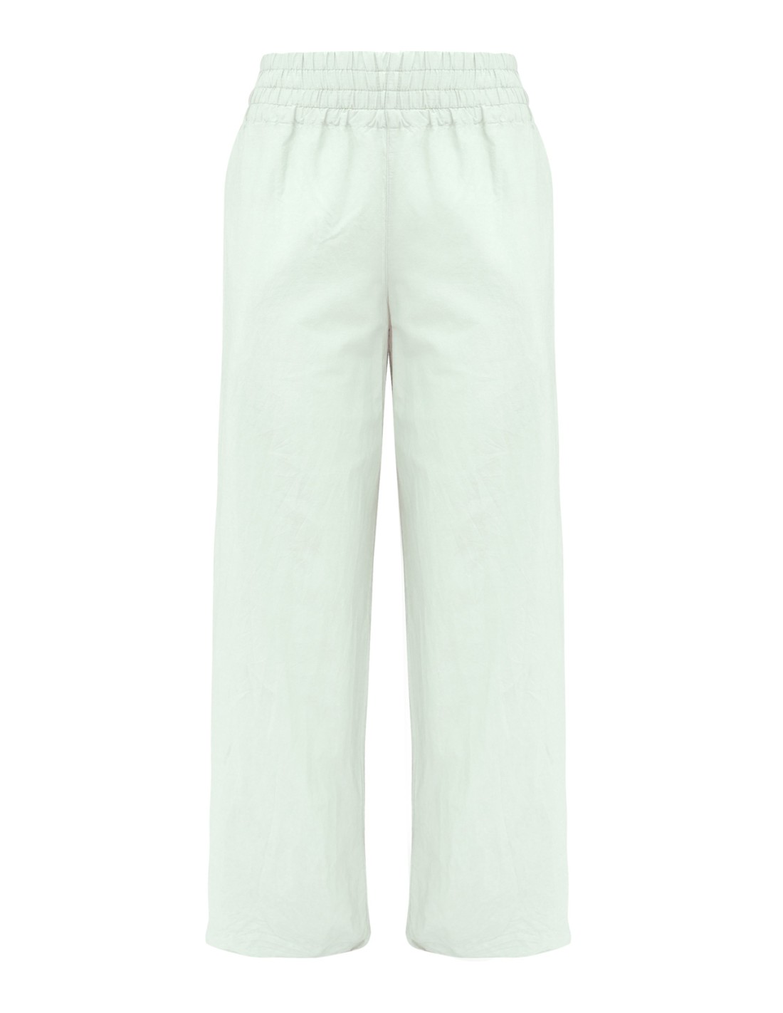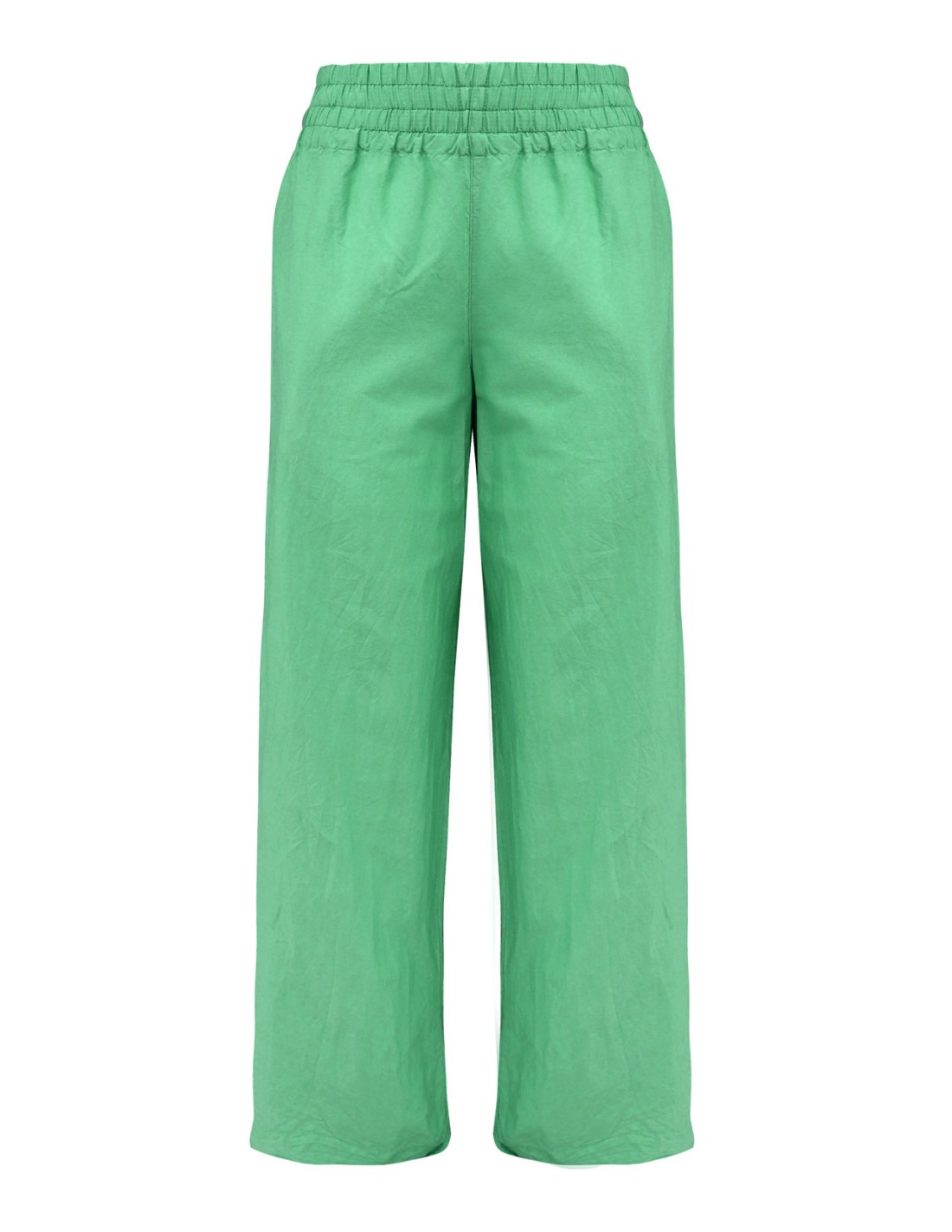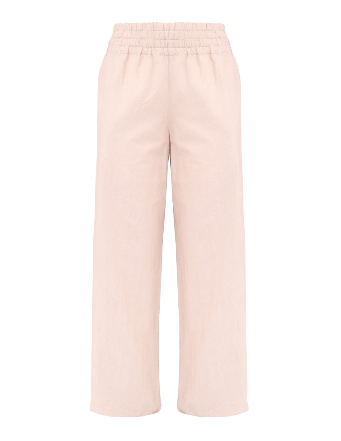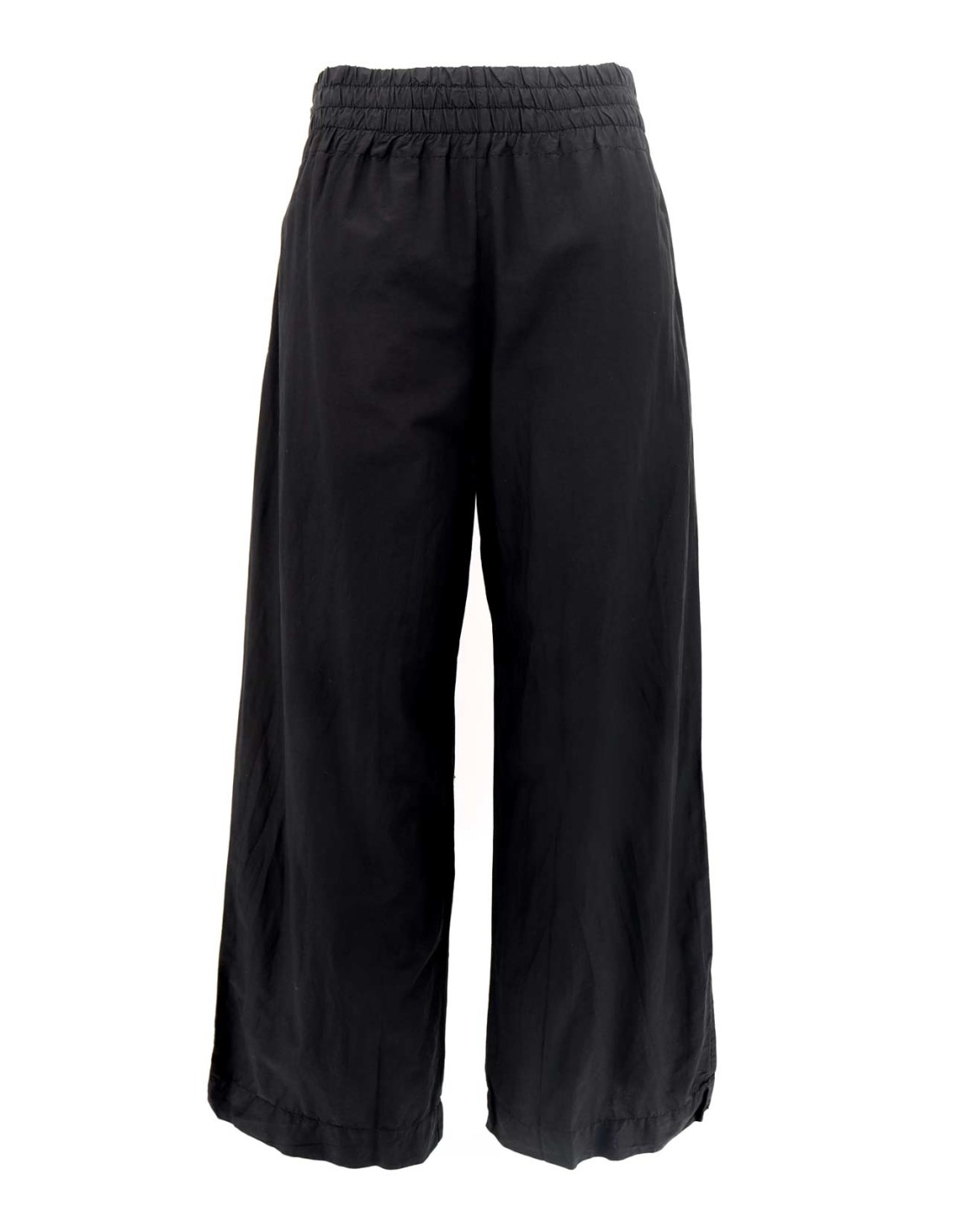 Il più fresco! Pantaloine leggerissimo realizzato in Cotone Biologico e Seta dal tessuto ad effetto leggermente stropicciato, elastico in vita e gamba larga. Perfetto in estate.