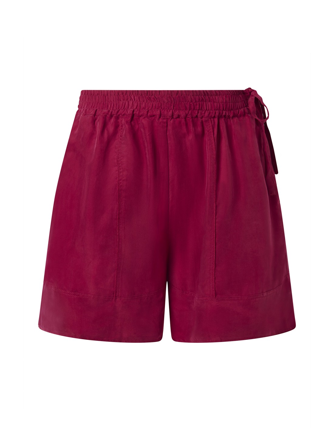 Elegante, fluido e freschissimo shorts e ampio realizzato in 100% Cupro. Modello a vita alta elastico, zip laterale e coulisse.