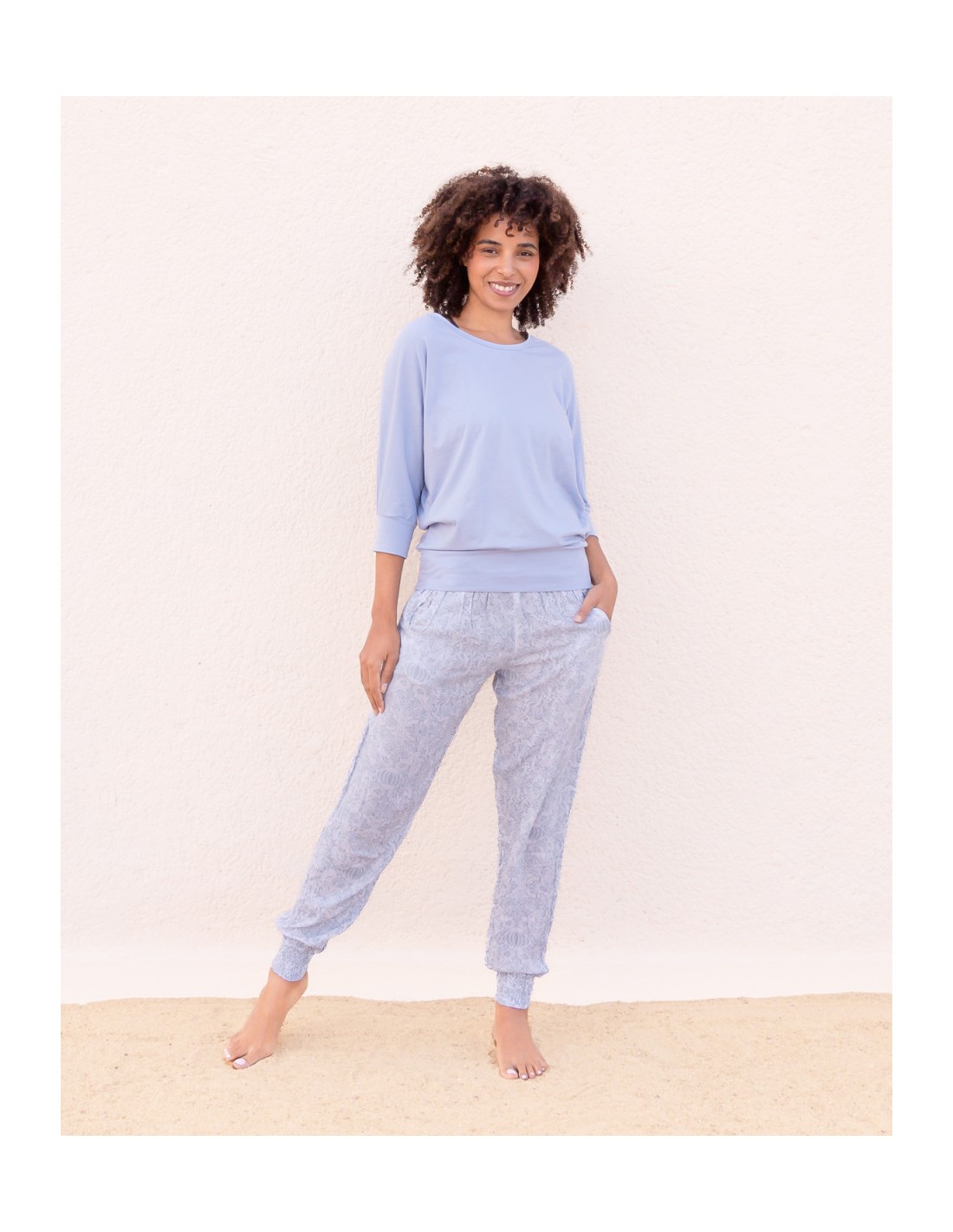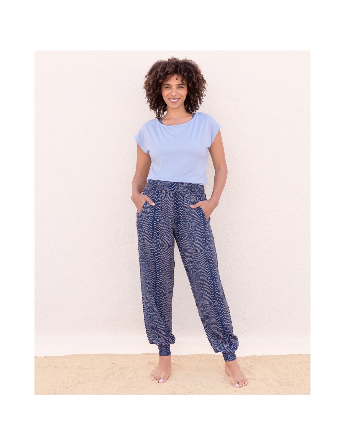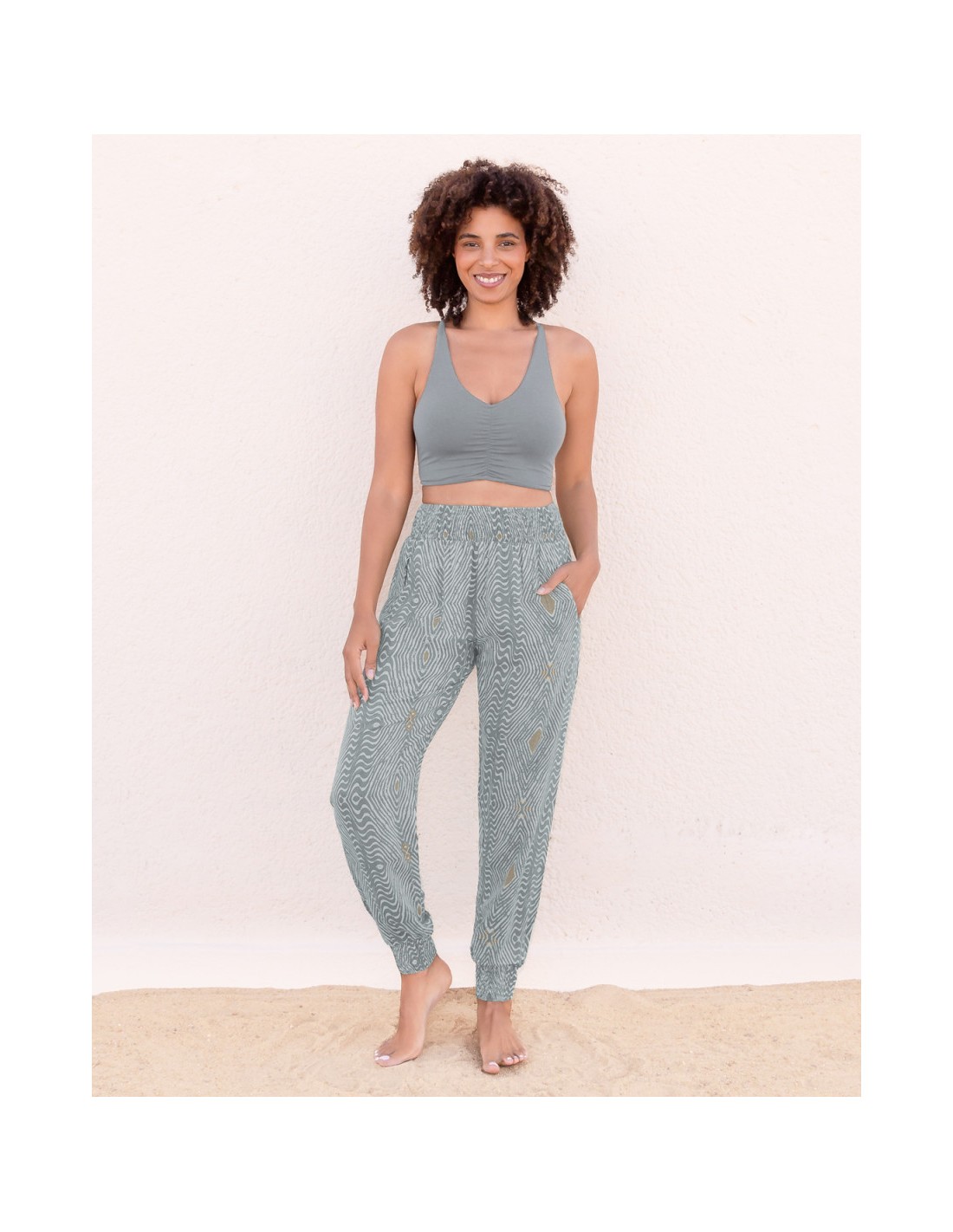 Pantalone fluido, leggero e comodissimo ideale per le tue pratiche di yoga, le giornate estive e i momenti di relax.