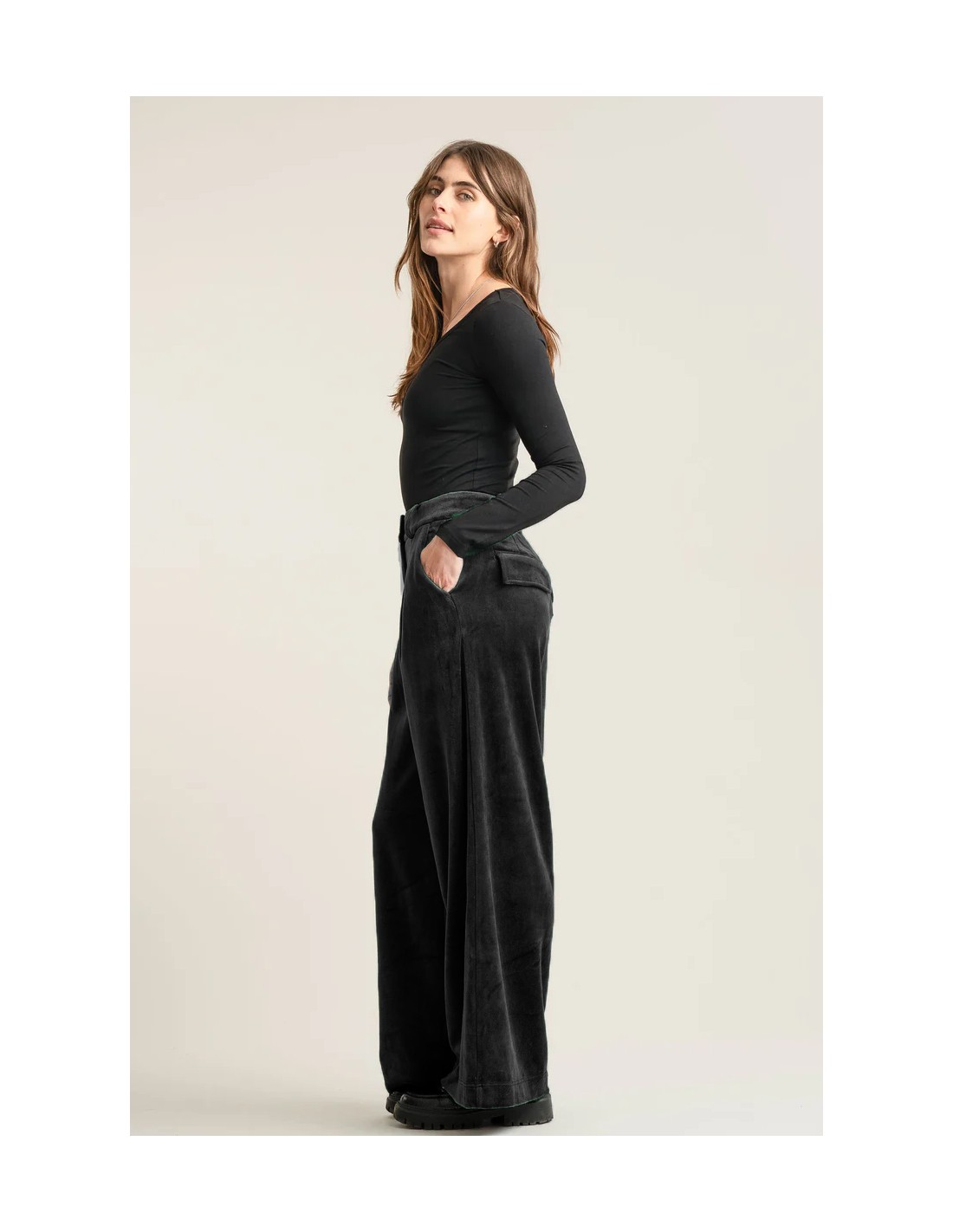 Una versione invernale e ancora più avvolgente dei classici Sofia, realizzati in velluto morbido e naturale. L’unione tra cotone biologico e poliestere riciclato crea un tessuto caldo ma fluido, con una caduta morbida che segue il corpo risultando molto resistente. Perfetti per chi ama capi comodi, sostenibili e con un tocco raffinato.
