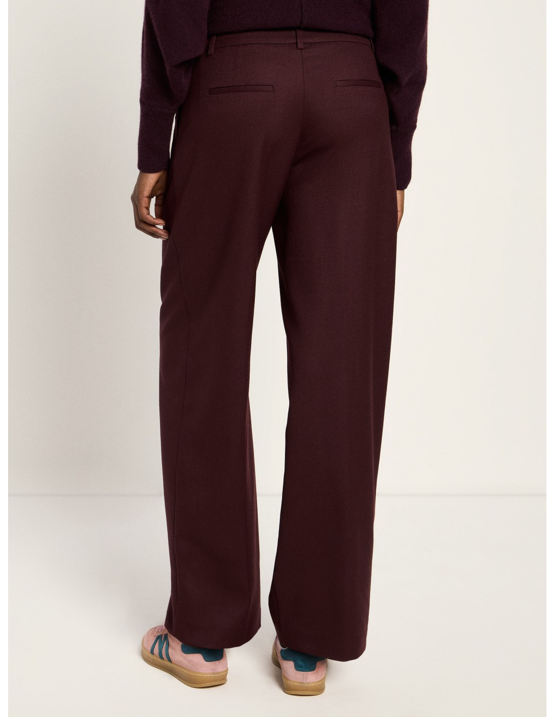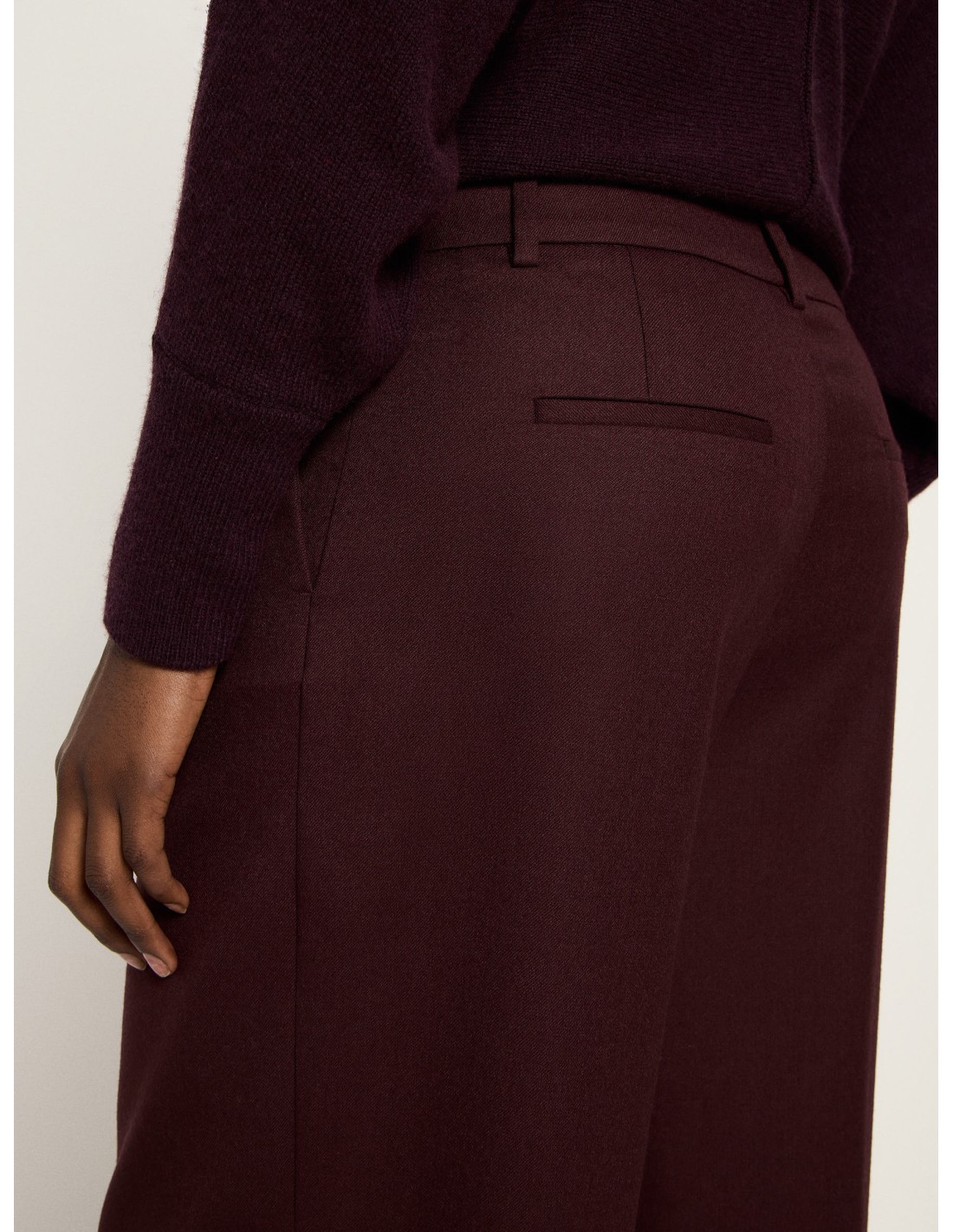 Caldi ed eleganti pantaloni in pura lana vergine biologica certificata GOTS. Linea dritta e ampia, elegante e senza tempo, con piega frontale che dona struttura. Un modello versatile, perfetto dall’ufficio al quotidiano.