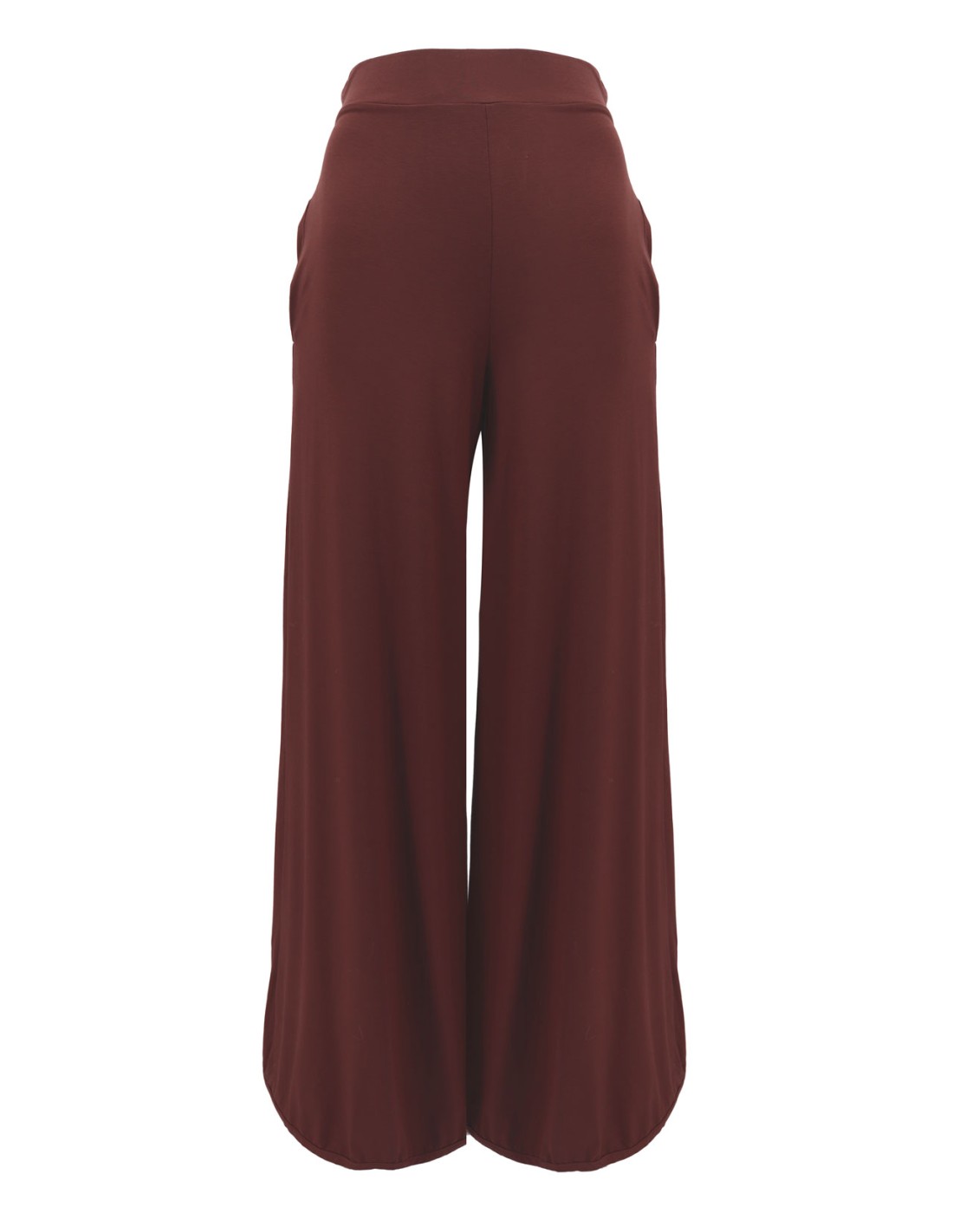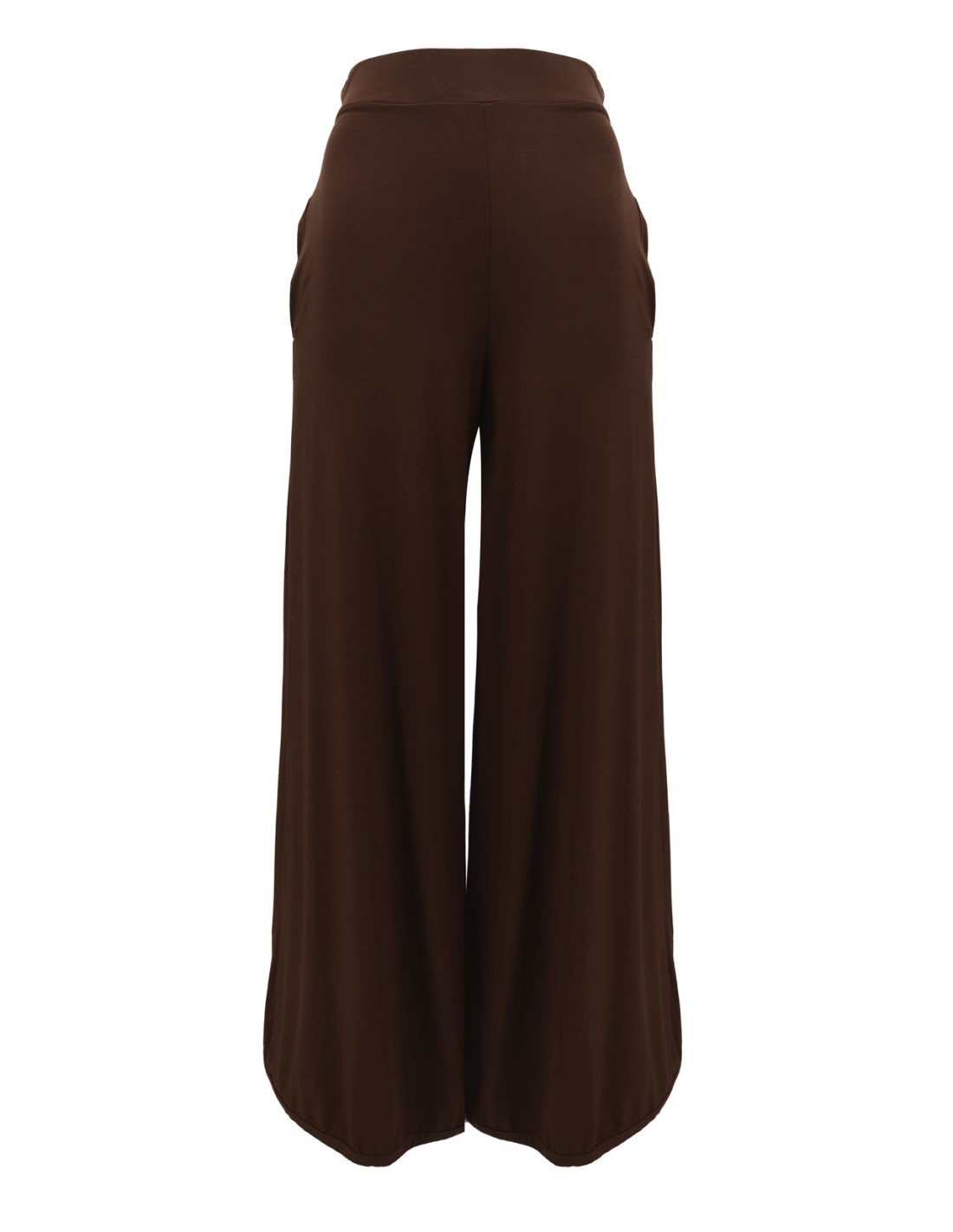 Questi pantaloni in bambù jersey sono pensati per chi cerca comodità vera, e uno stile fluido. La linea è ampia, molto lunghi e svasati e svolazzanti, a palazzo largo quasi come una gonna pantalone: cade morbida lungo la gamba, accompagna il movimento e dona una sensazione di libertà totale.