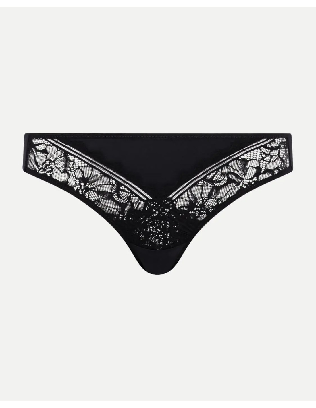 Il design classico accompagna le forme senza costringerle, offrendo una copertura dei glutei equilibrata e confortevole. Il pizzo floreale si combina con la maglia opaca in un gioco delicato di trasparenze: la parte anteriore è leggermente semitrasparente, mentre sul gluteo il tessuto è più coprente e opaco, per garantire sicurezza e discrezione in ogni movimento.