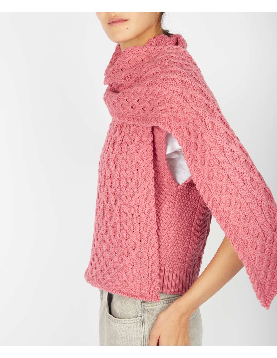 Questo capo è realizzato in lana Irlandese Biologica secondo l’antica tradizione di lavorazione a maglia tipica della costa irlandese.