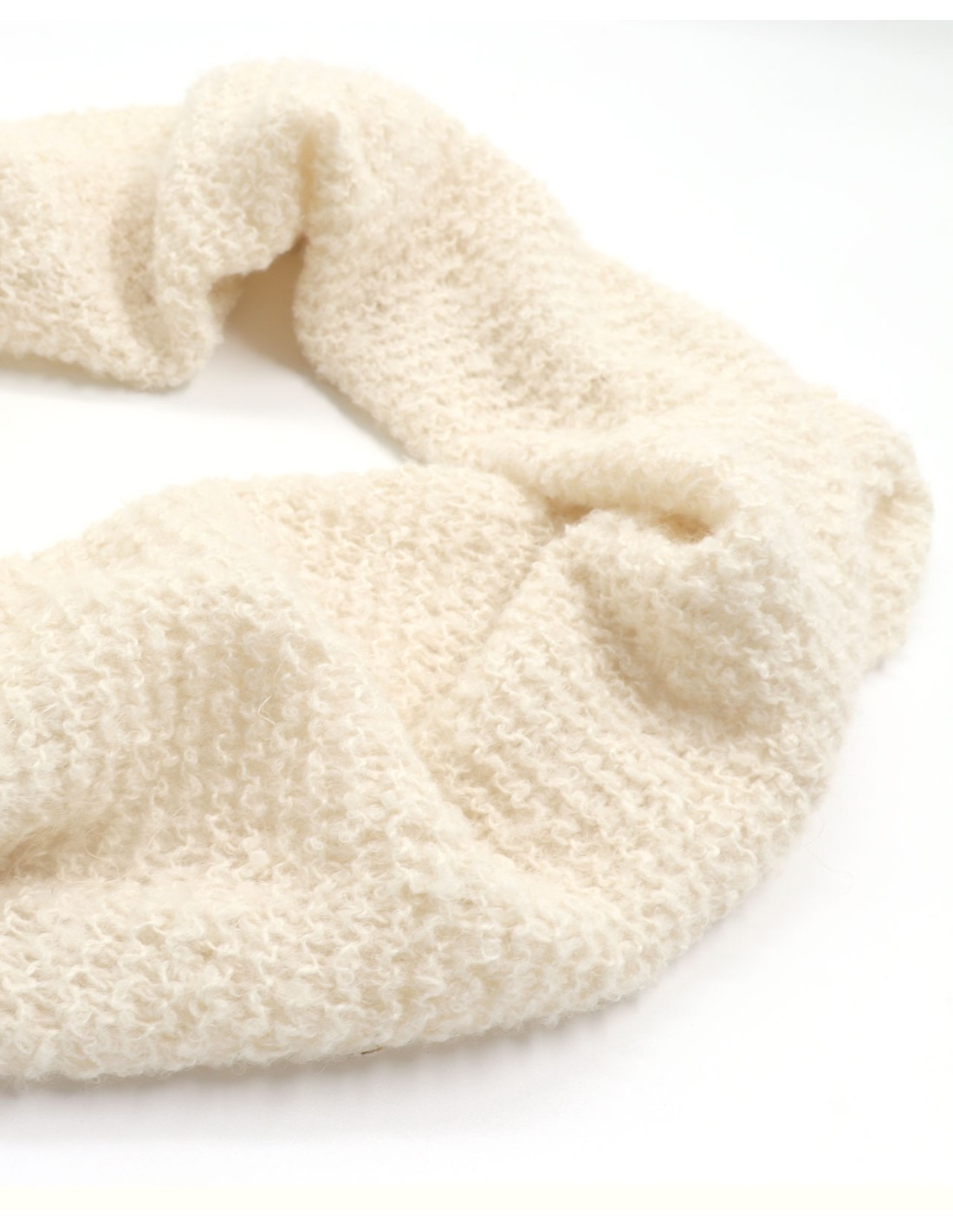 La trama bouclè la rende super vaporosa e morbidissima, molto elastica e leggera addosso. Una sciarpa che ti permette di fare due giri attorno al collo e volendo puoi usare anche come cappuccio.