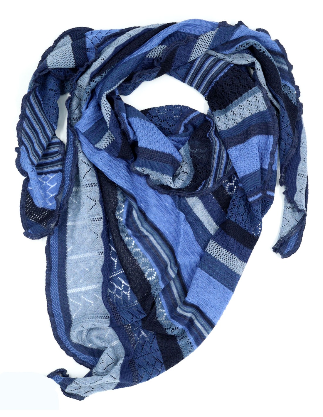 La forma è un grande triangolo che misura 200x100 cm e può essere indossata come sciarpa, foulard, stola e scialle, perfetta in ogni stagione è morbida, naturale e sostenibile.