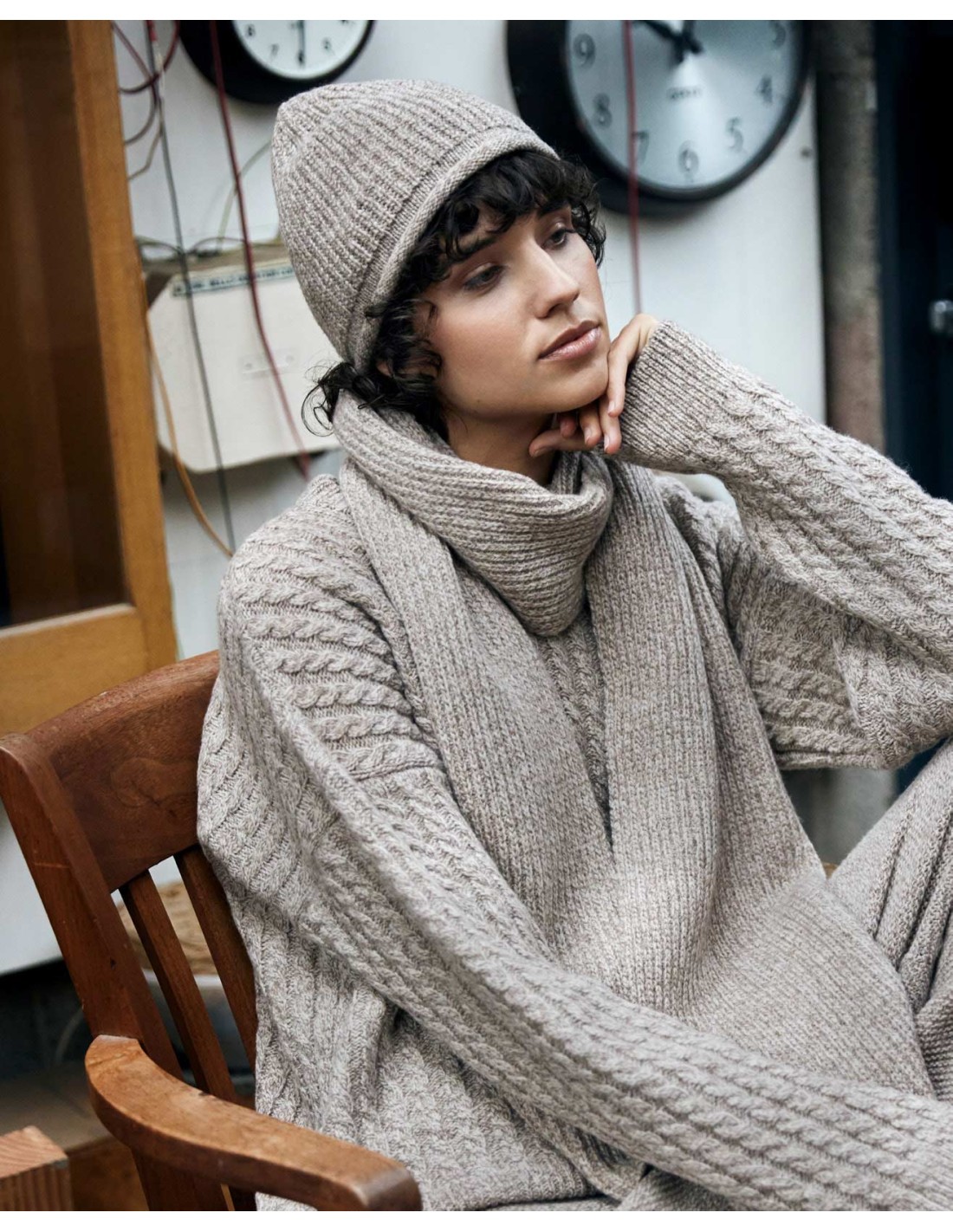 Capo realizzato in pura Lana Vergine Irlandese, secondo l'antica tradizione di lavorazione a maglia tipica della costa Irlandese. Prodotto artigianale provenienti dai maglifici storici di Dublino.