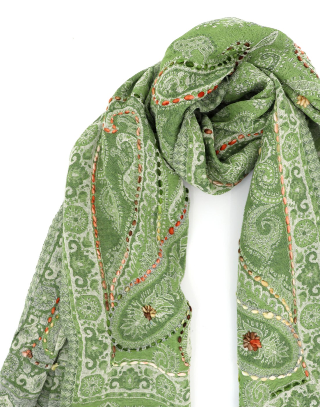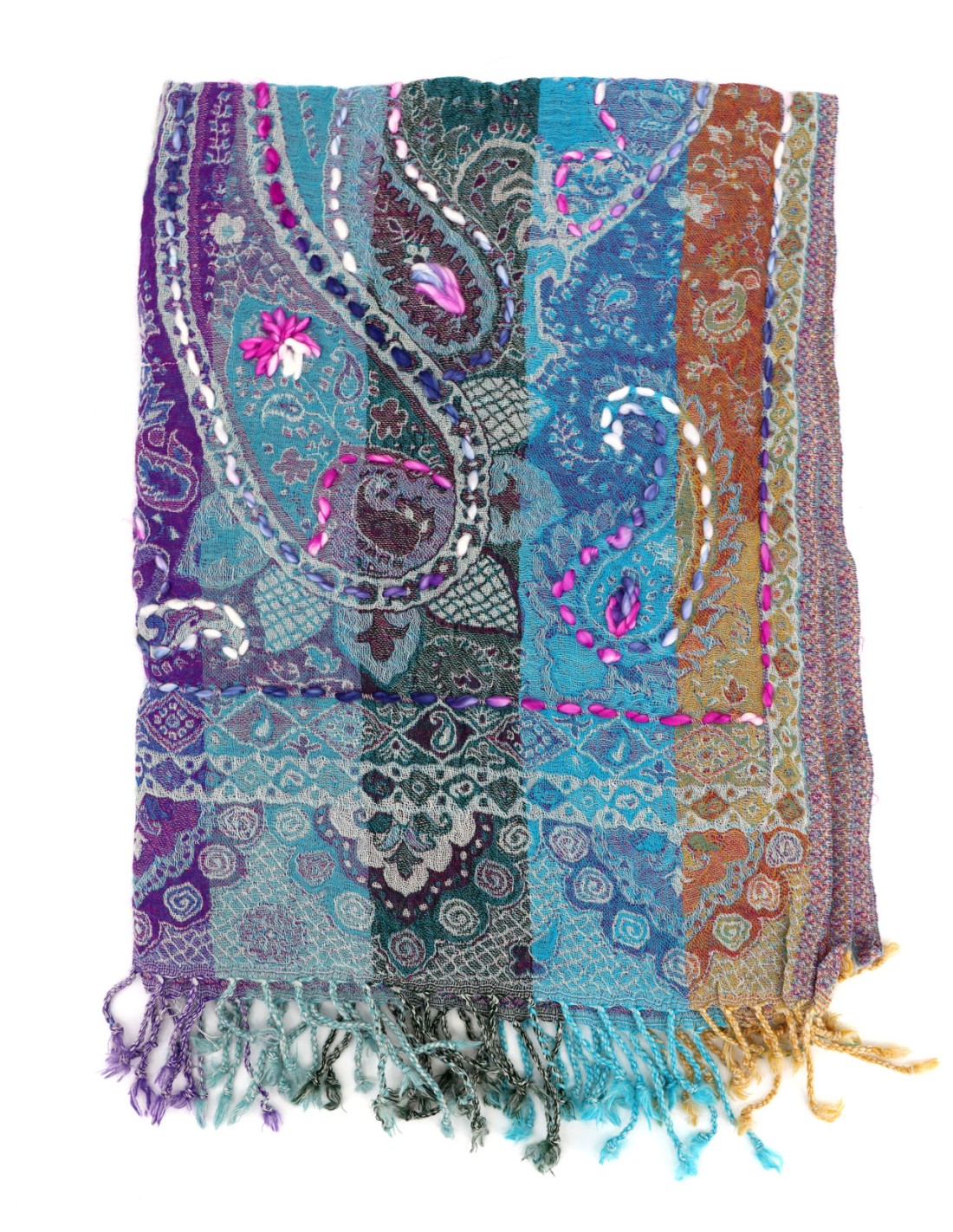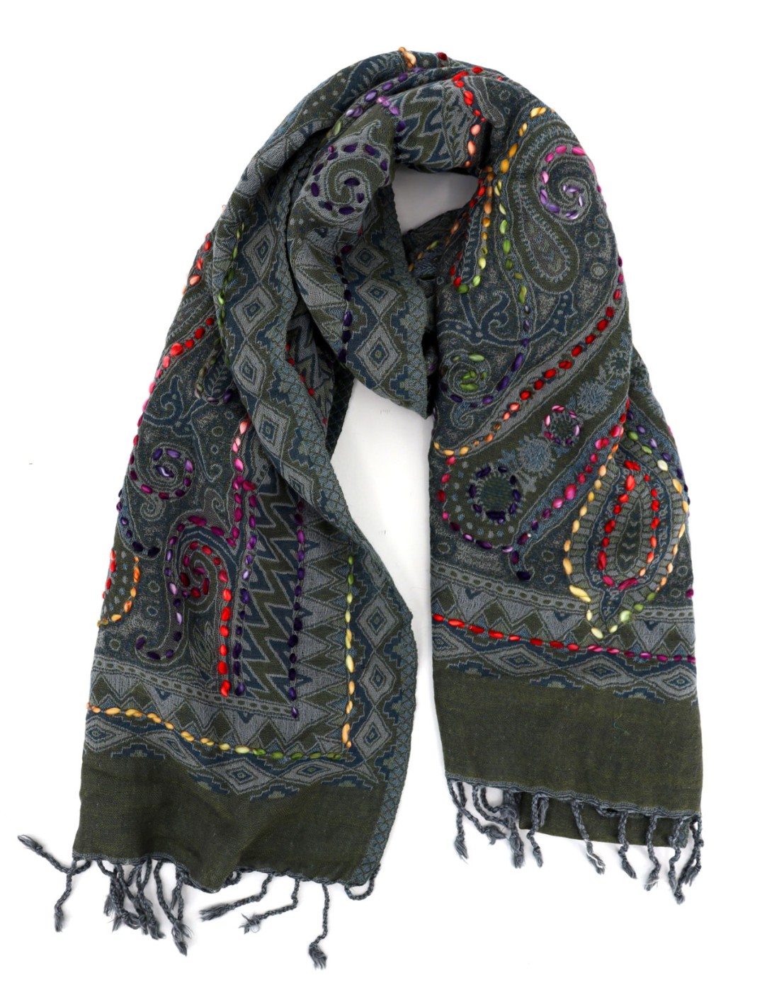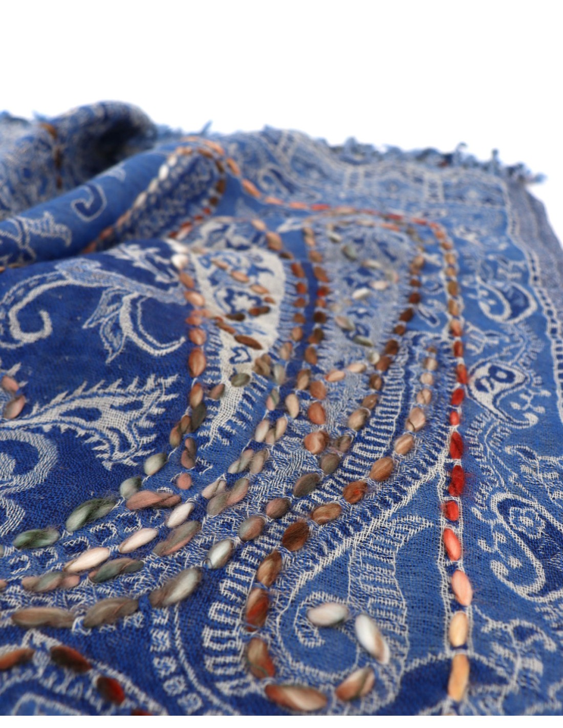 Prodotto naturale, artigianale e sostenibile realizzato a mano da una piccola comunità di artigiani del Kashmir. Le sciarpe essendo artigianali potrebbero avere delle leggerissime differenze cromatiche rispetto alla foto che comunque resta indicativa dei colori principali.