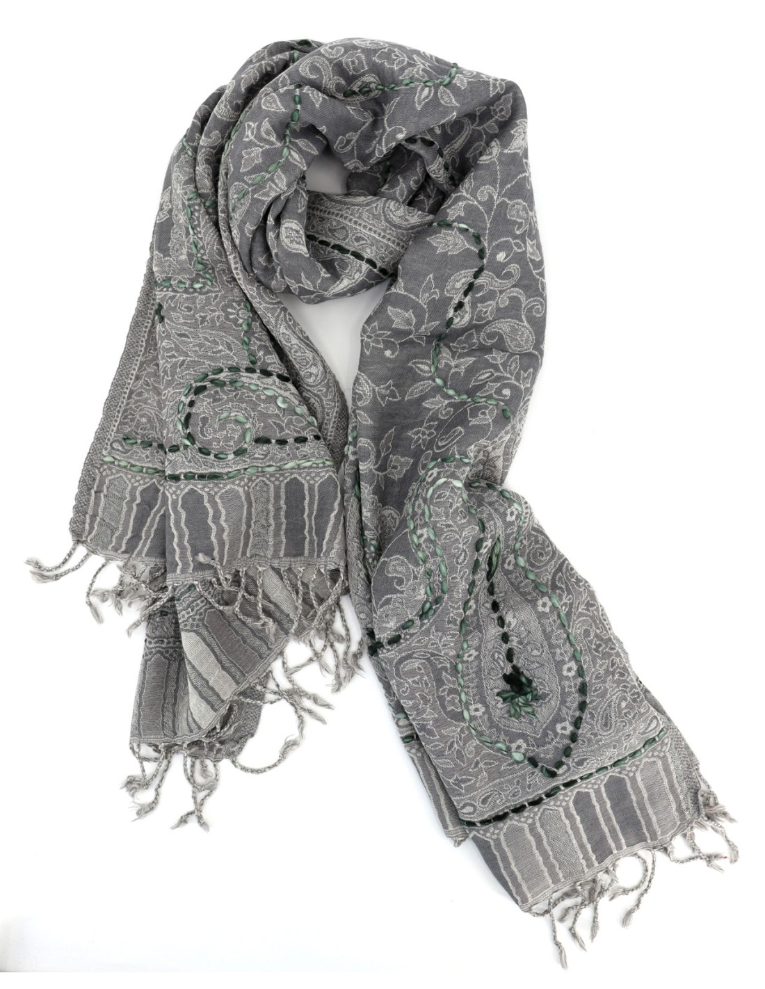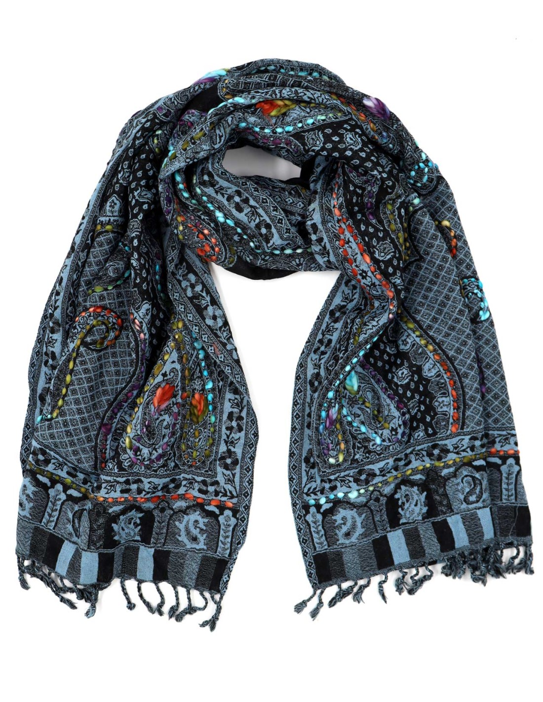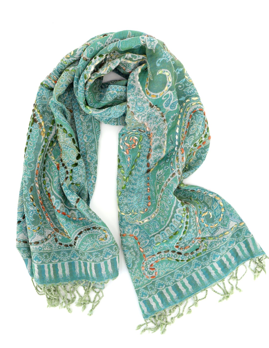 Prodotto naturale, artigianale e sostenibile realizzato a mano da una piccola comunità di artigiani del Kashmir. Le sciarpe essendo artigianali potrebbero avere delle leggerissime differenze cromatiche rispetto alla foto che comunque resta indicativa dei colori principali.