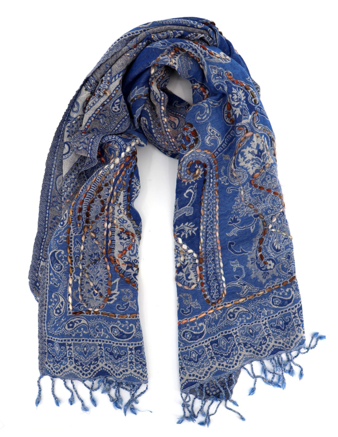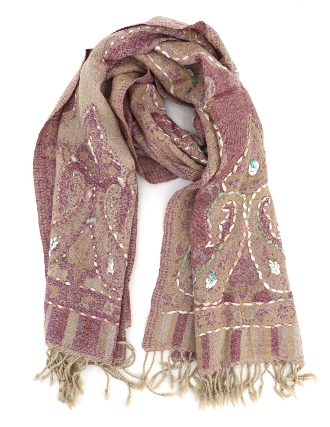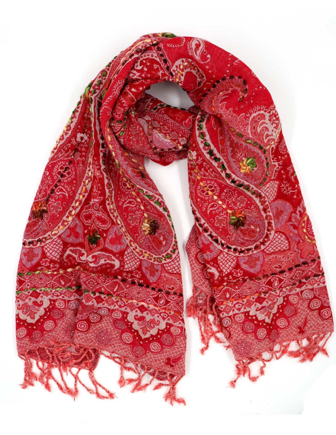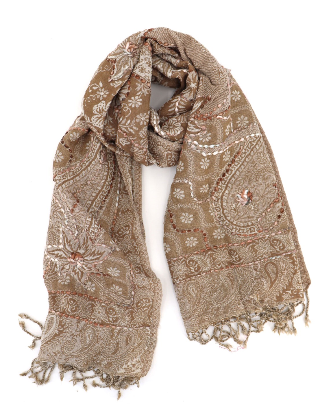 Prodotto naturale, artigianale e sostenibile realizzato a mano da una piccola comunità di artigiani del Kashmir. Le sciarpe essendo artigianali potrebbero avere delle leggerissime differenze cromatiche rispetto alla foto che comunque resta indicativa dei colori principali.