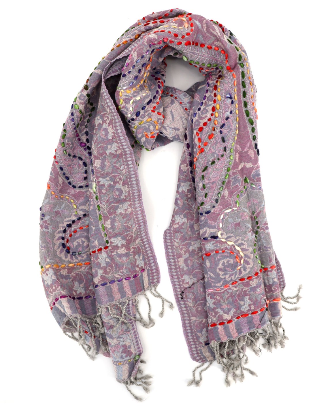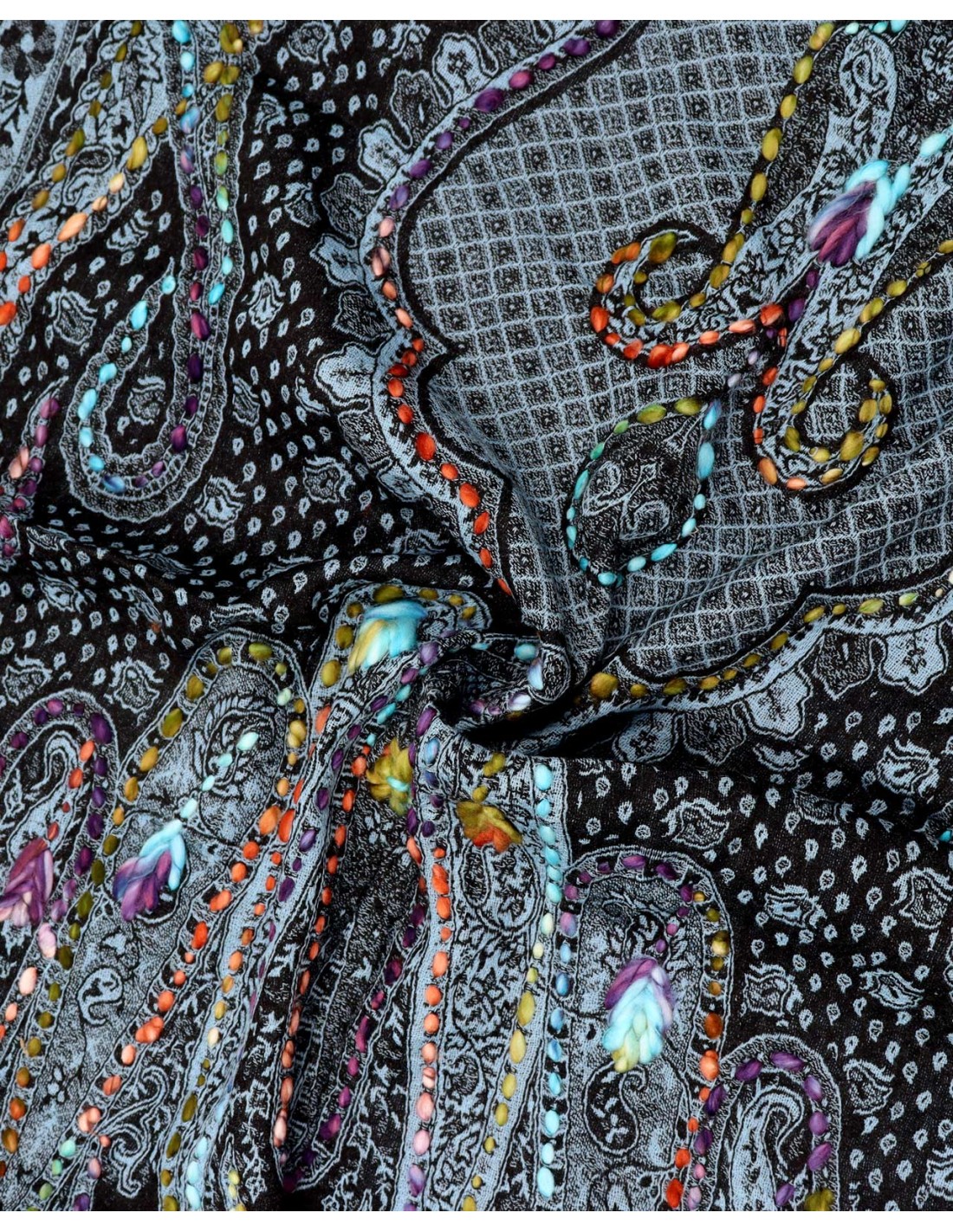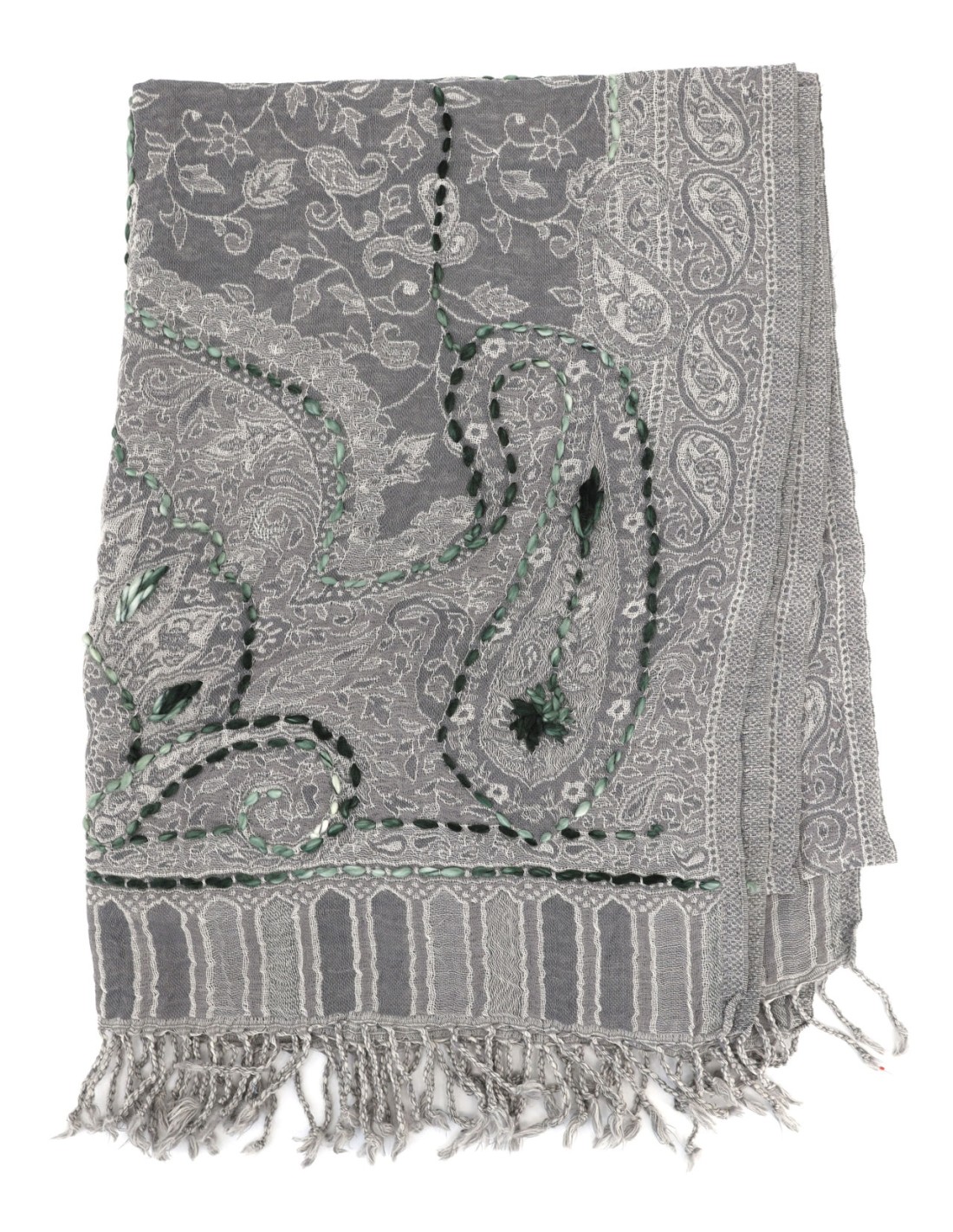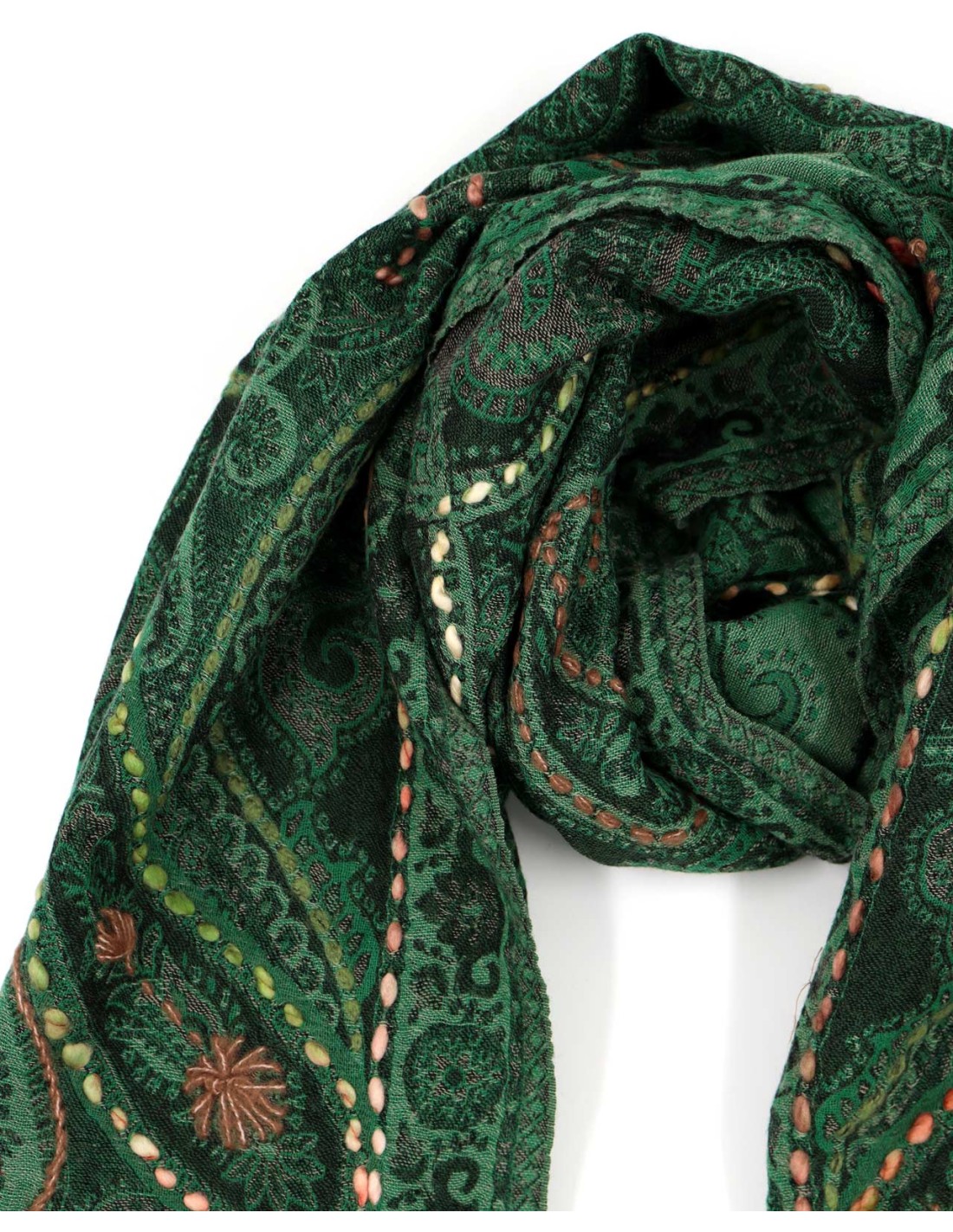 Modello con lavorazione jaquard e dettagli ricamati a mano in lana grossa. Tessuta a telaio ha una trama sottile ma corposa, leggera addosso come un foulard ma calda come una sciarpa. Bellissima da indossare per arricchire i tuoi look e perfetta da regalare.