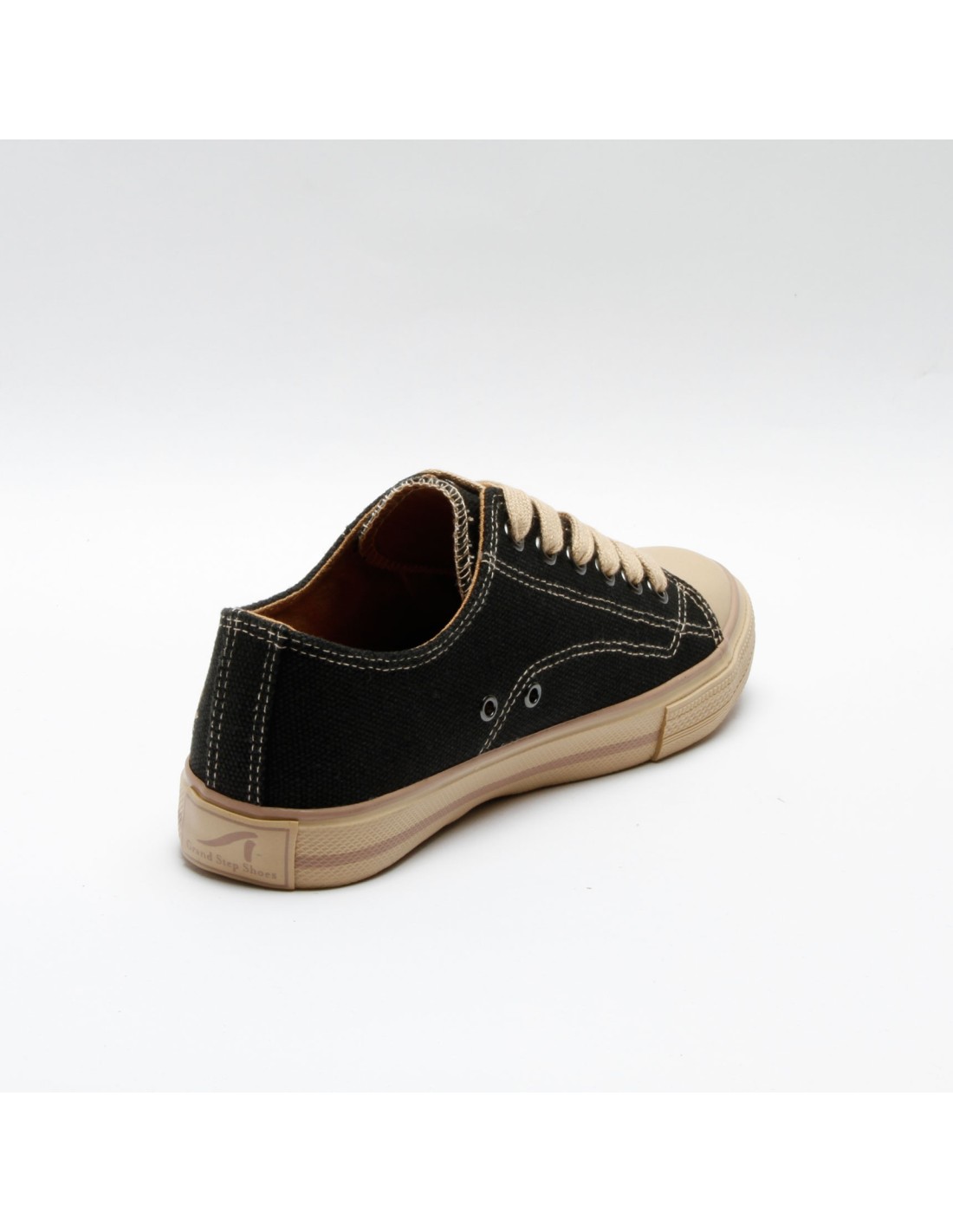 Modello esclusivo dallo stile "Vintage", una riproduzione del primissimo paio ideato 20 anni fa dall'azienda produttrice. Tomaia nero, con suola e lacci color crema. Ricamo in contrasto sul lato esterno della scarpa.