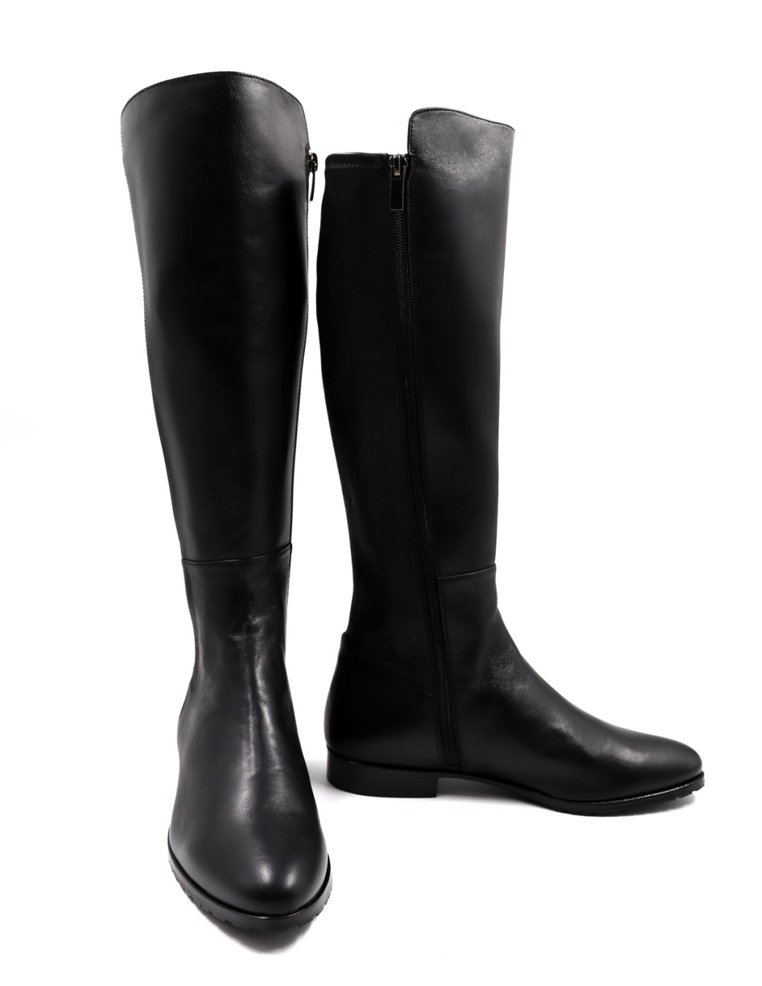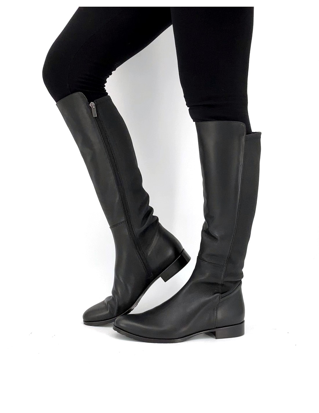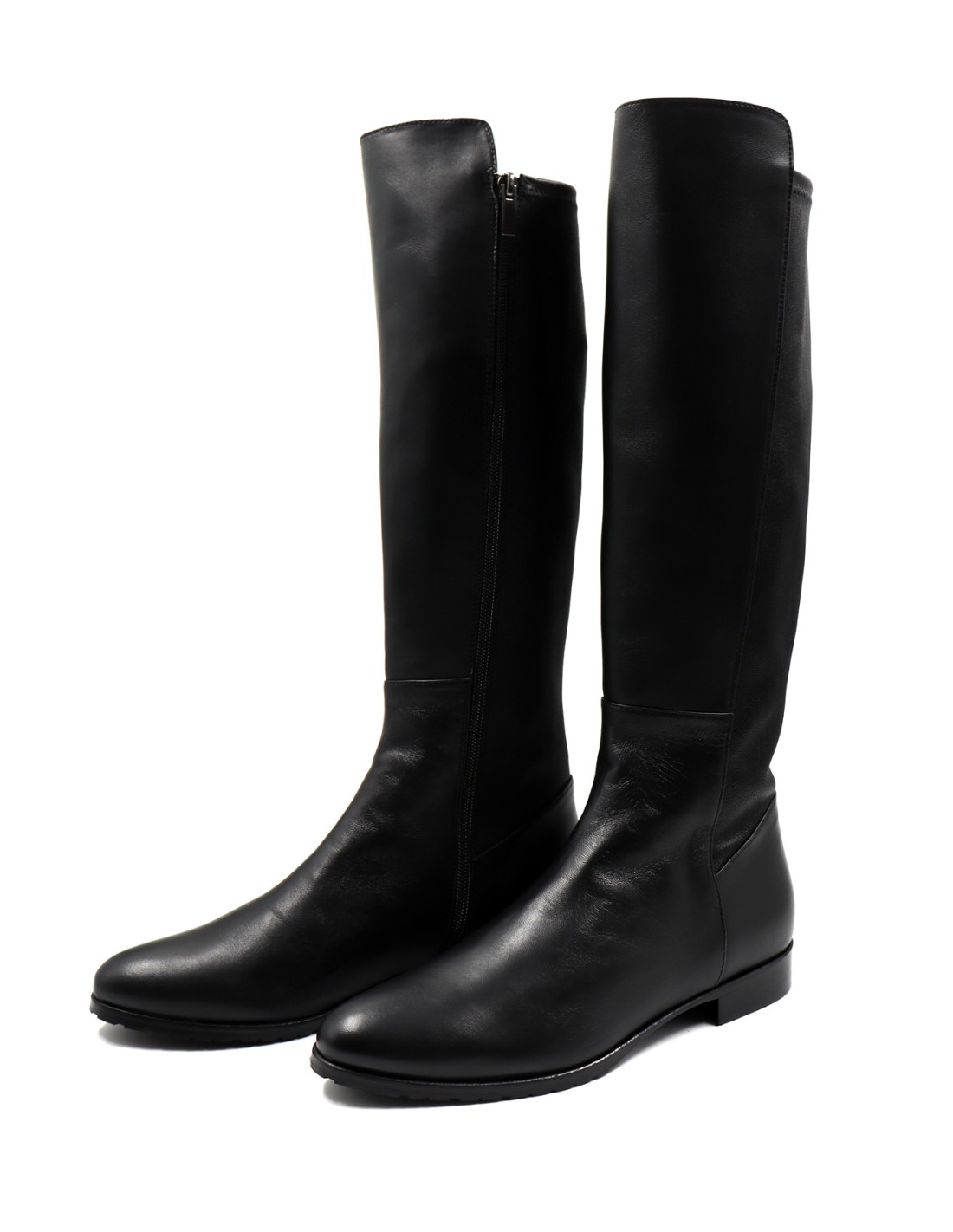 La linea è pulita e femminile, con punta affusolata e design essenziale che slancia la gamba. Il fronte dello stivale è doppio, con pelle esterna e fodera in pelle per dare struttura, mentre il retro è in nappa stretch per adattarsi a qualsiasi polpaccio, anche il più tornito. Lo avvolge senza stringere, seguendo naturalmente la forma della gamba.