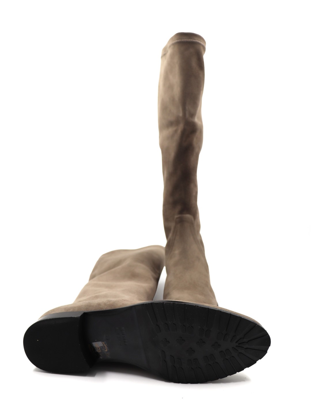 Lo Stivale in Camoscio Stretch è il più morbido della collezione Lizè. Si indossa come un guanto, senza zip né cerniere, e la pelle di camoscio stretch abbraccia ogni gamba. Suola gommata antiscivolo, forma femminile e calzata ampia. Artigianale Made in Italy firmato Lizè.