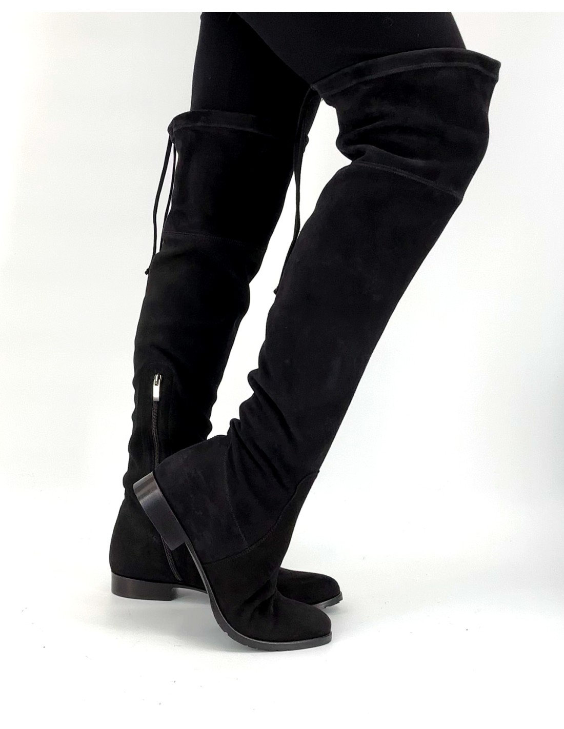 È realizzato artigianalmente in Veneto, in una piccola azienda familiare specializzata in calzature di alta qualità. Un cuissardes raffinato, versatile e comodo, perfetto sia con leggings e maglioni morbidi, sia con abitini invernali per un look più elegante.
