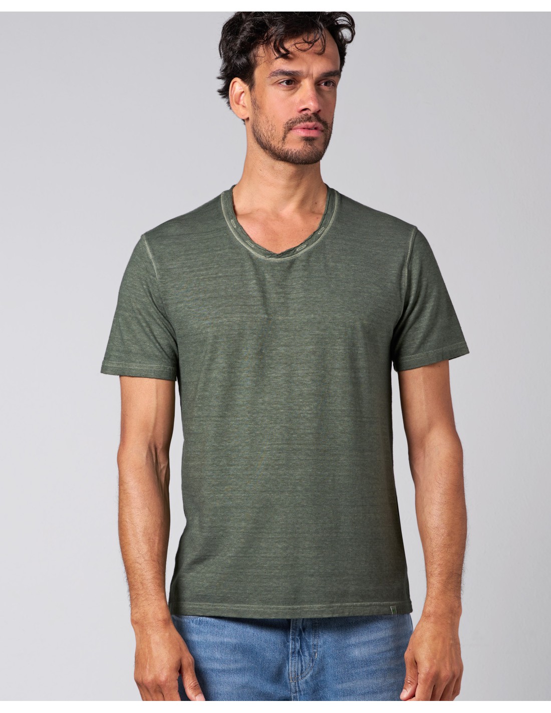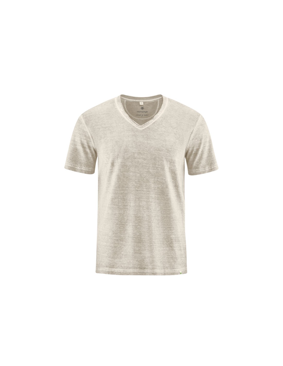Fresca, leggera e anti-odore questa T-shirt in canapa e Cotone Biologico a maniche corte. La colorazione effetto melange granuloso e sbiadito con cuciture a vista danno un tocco vintage e vissuto a questo capo.