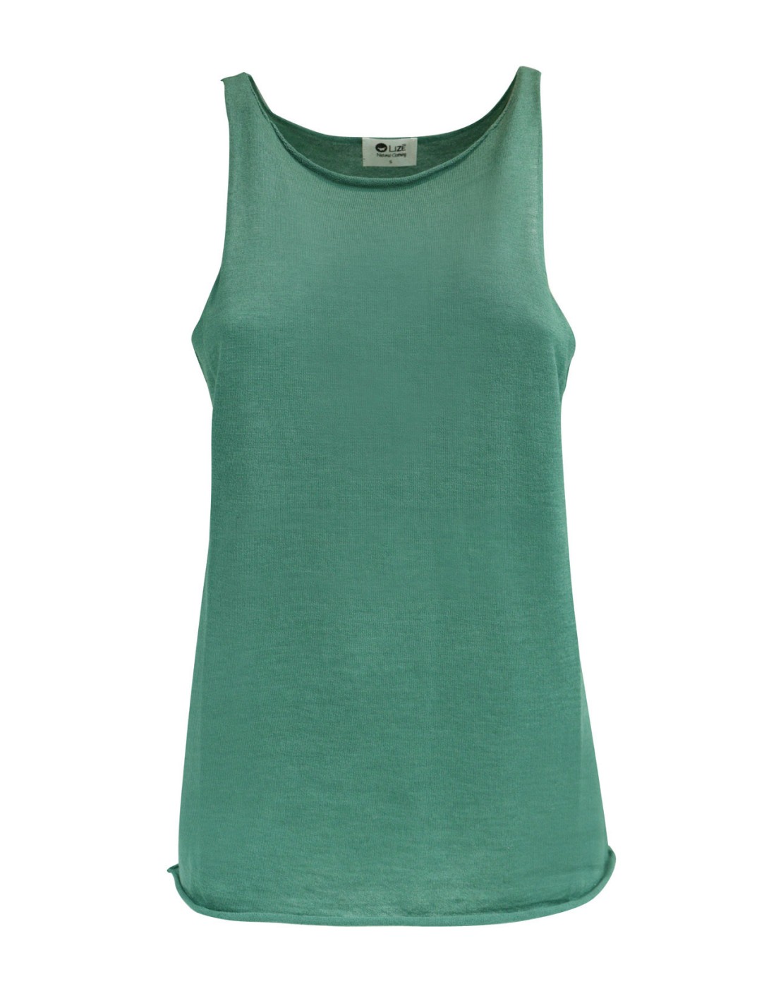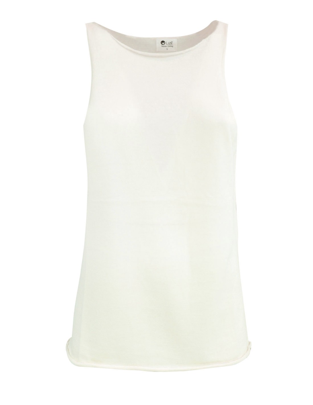 Giovane, scanzonata e libera, questa canotta accollata in esclusivo in 100% Cashmere Extrafine finezza 60 con profili in taglio a vivo finish roll. Una nuvola da indossare a pelle, anche in estate.