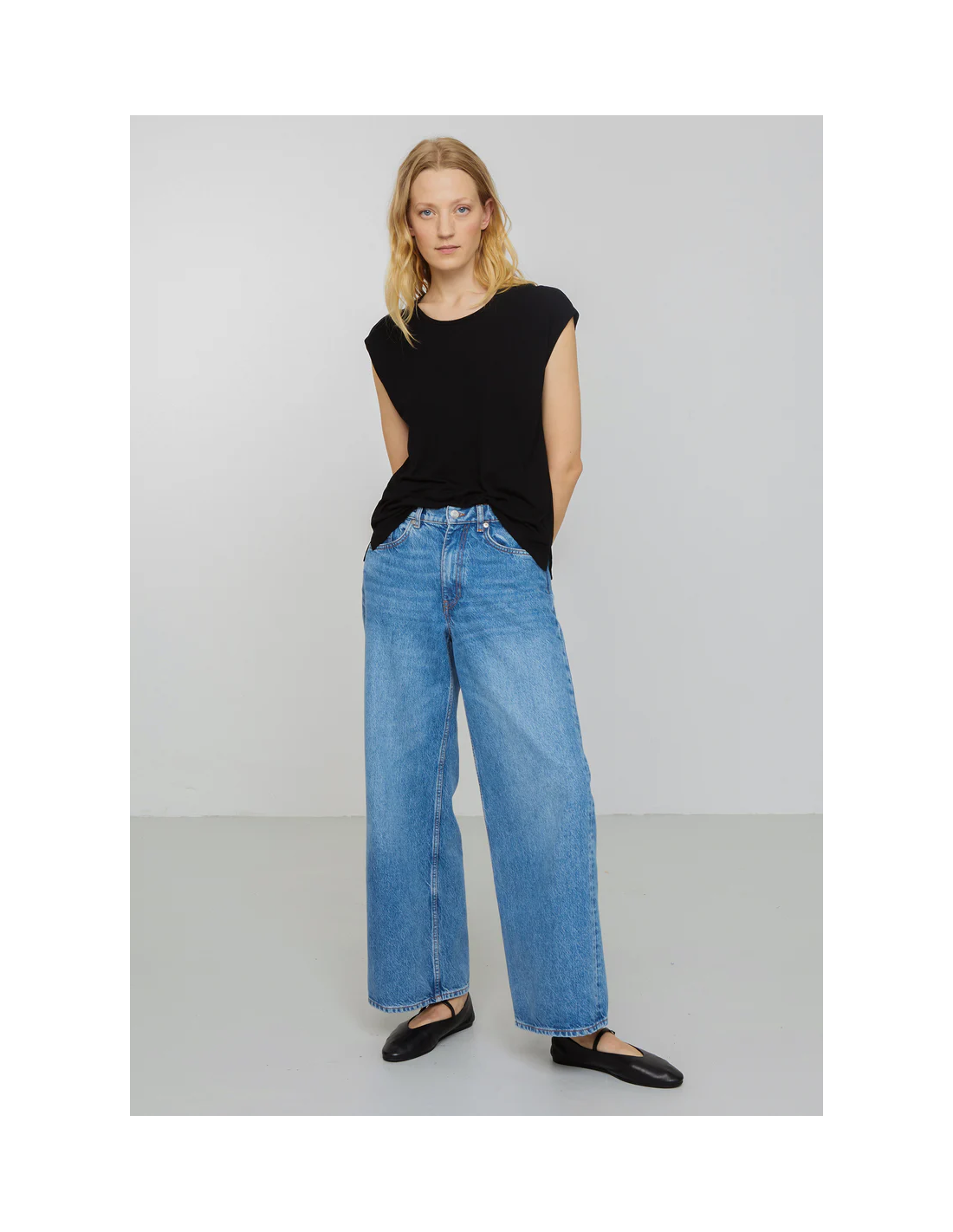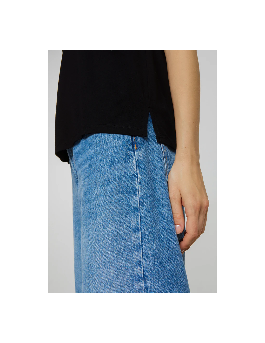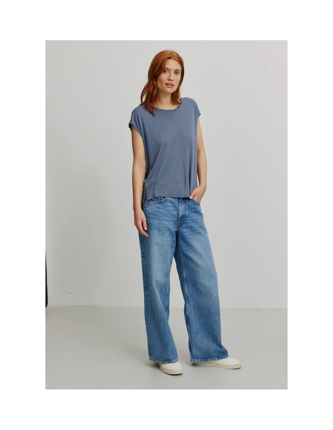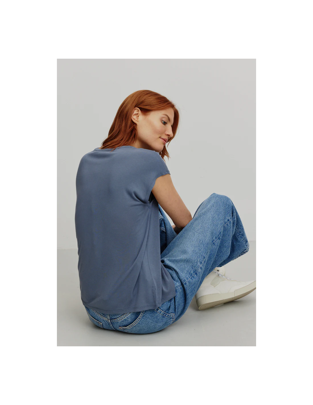 Una T-shirt perfetta da indossare con un pantalone in cotone naturale, una gonna leggera o un denim, sia nella vita quotidiana che in viaggio. È una di quelle t-shirt che si prendono spesso dall’armadio perché sono fresche, leggere e sempre comode addosso.
