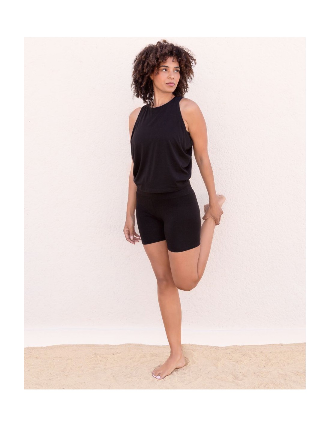 È uno di quei capi che metti per allenarti e poi continui a indossare nel tempo libero, perché ti fa stare bene davvero. La fluidità del tessuto e la leggerezza del taglio lo rendono una scelta intelligente per chi desidera uno sportwear naturale, lontano dalle fibre sintetiche a contatto con la pelle.