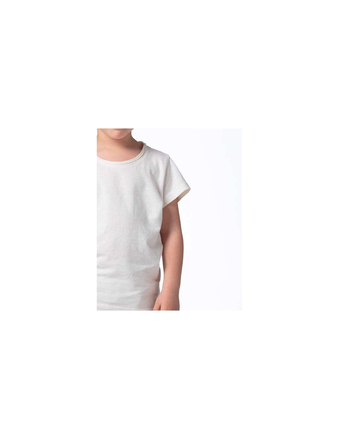 Morbida e fresca T-shirt Bimbi Unisex realizzata in canapa e Cotone Biologico con girocollo. Resistente, morbidissima e fresca per l'estate, antisudore e totalmente anallergica. Prodotto naturale, Vegan e sostenibile.