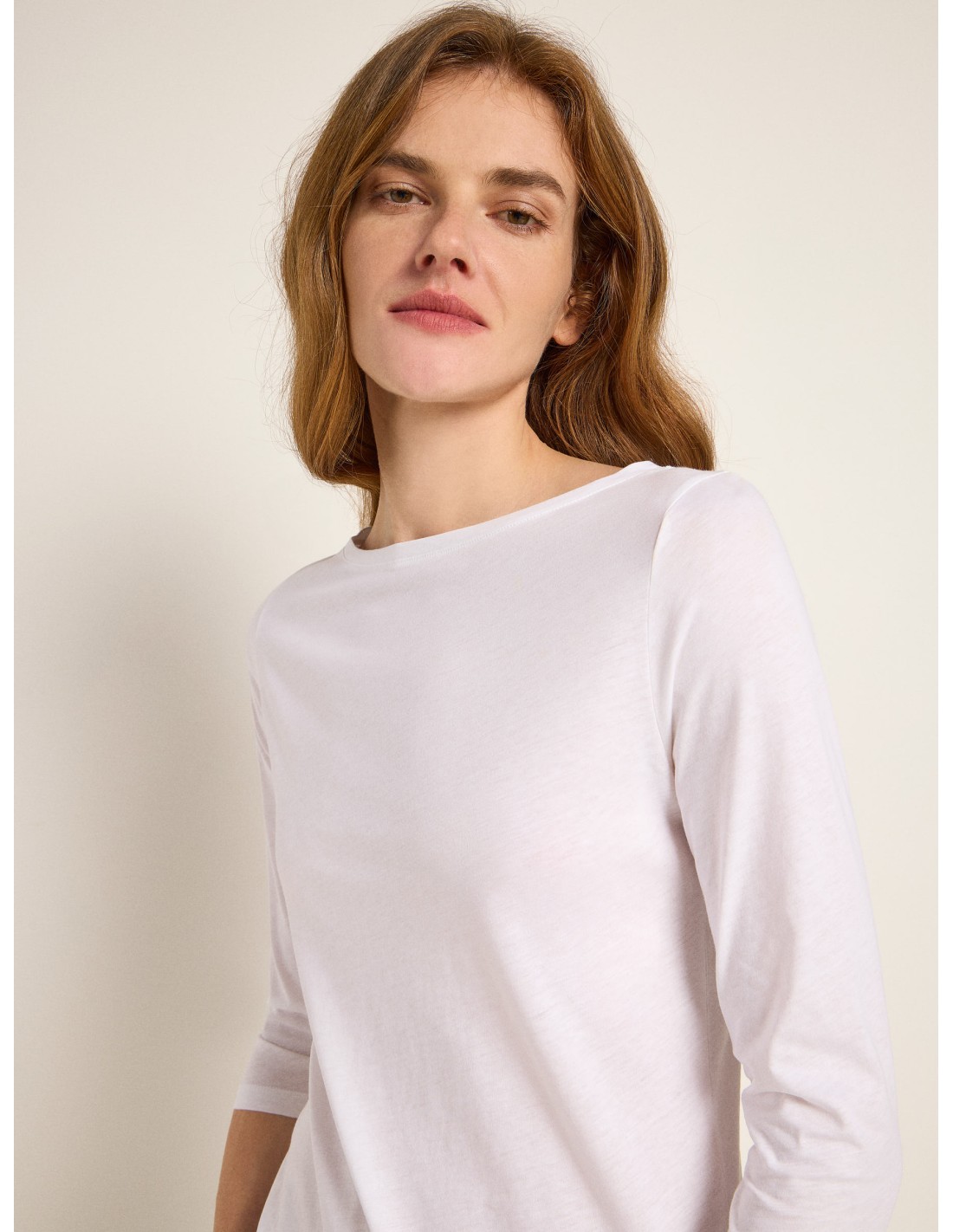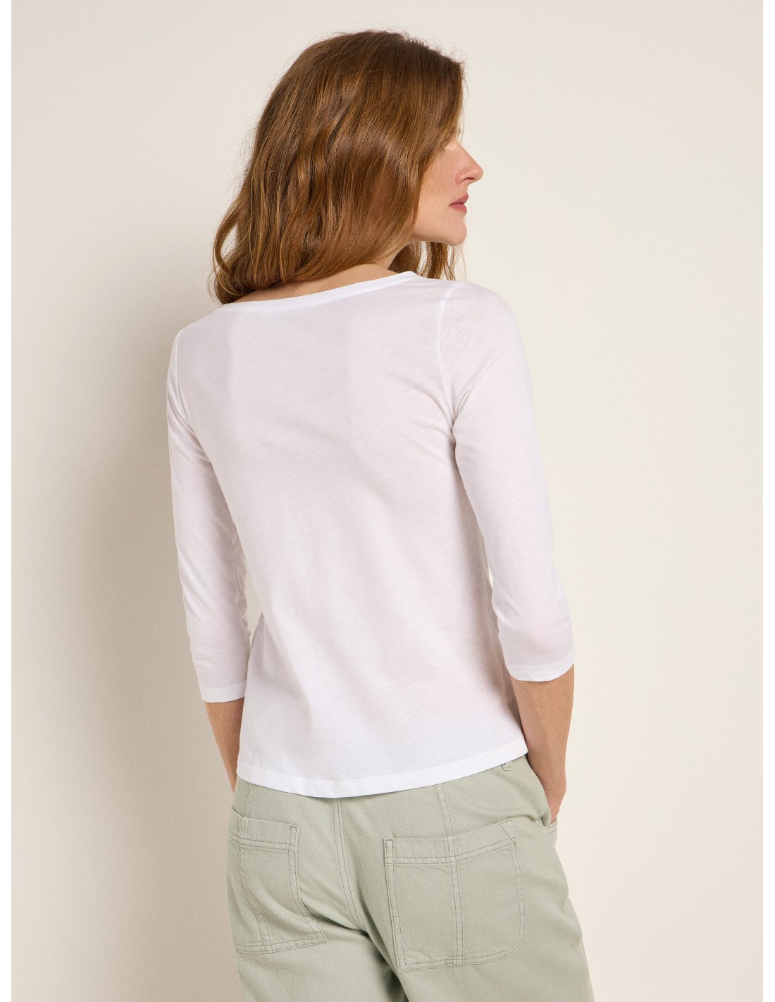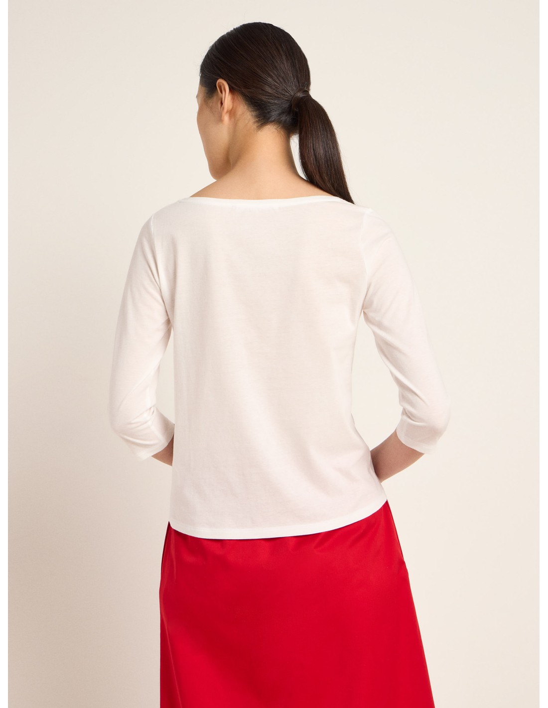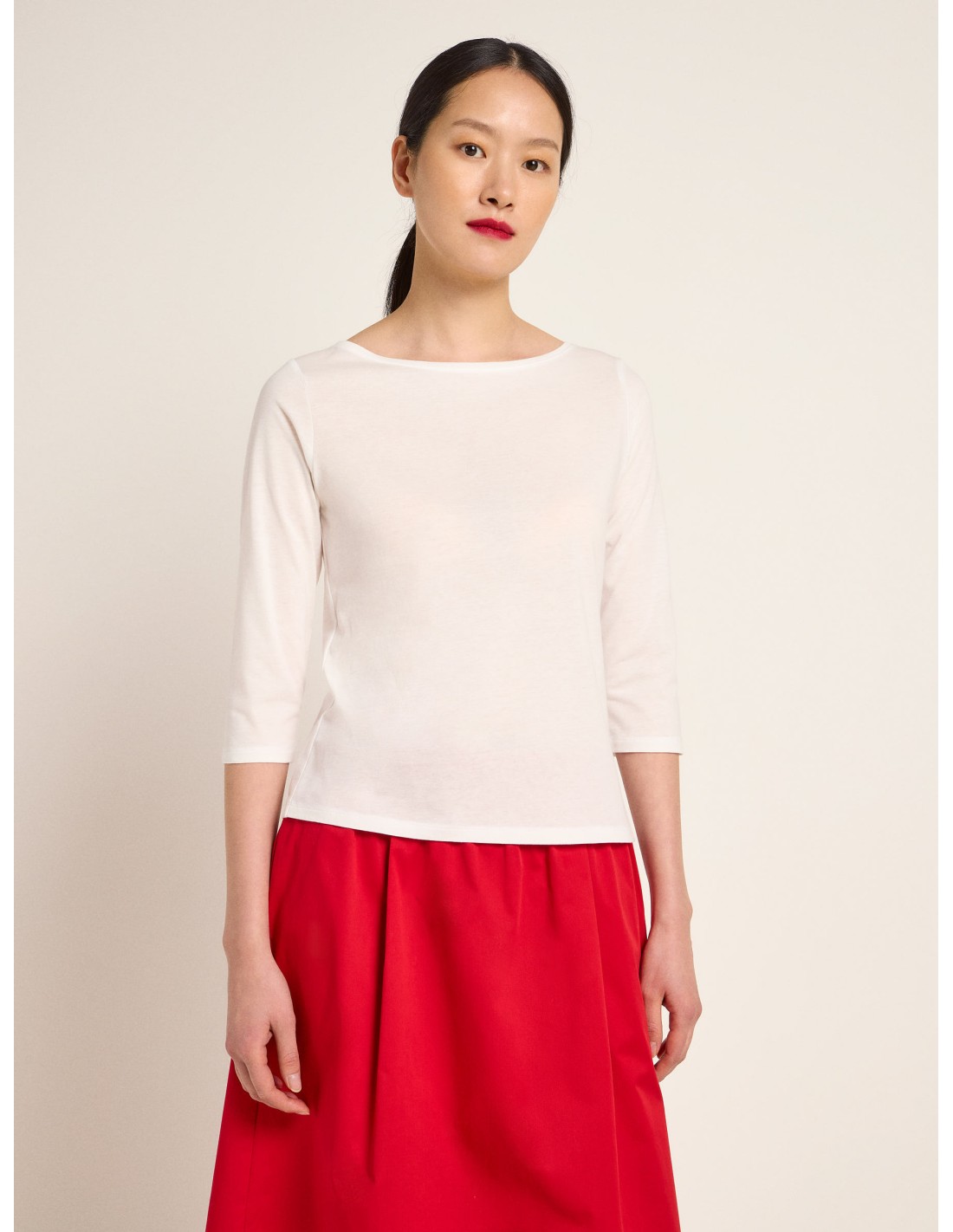 Morbida e leggera T-shirt Basic con scollo a barchetta e maniche a 3/4. Realizzata in cotone Biologico extrafine, molto morbido e resistente.