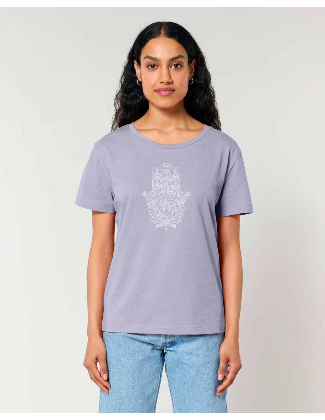 la Mano Hamsa, emblema di protezione e giustizia, e il Fiore di Loto, che nasce dal fango per sbocciare puro e luminoso, simbolo di rinascita e trasformazione.