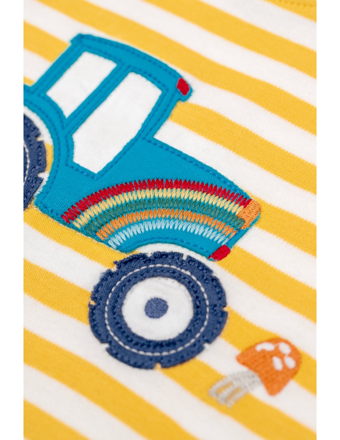 Il design con spalla incrociata e bottoncino a pressione rende il cambio facile e veloce. Sul davanti, l’allegra applicazione con il trattore aggiunge un tocco di colore e fantasia che i bambini adorano.