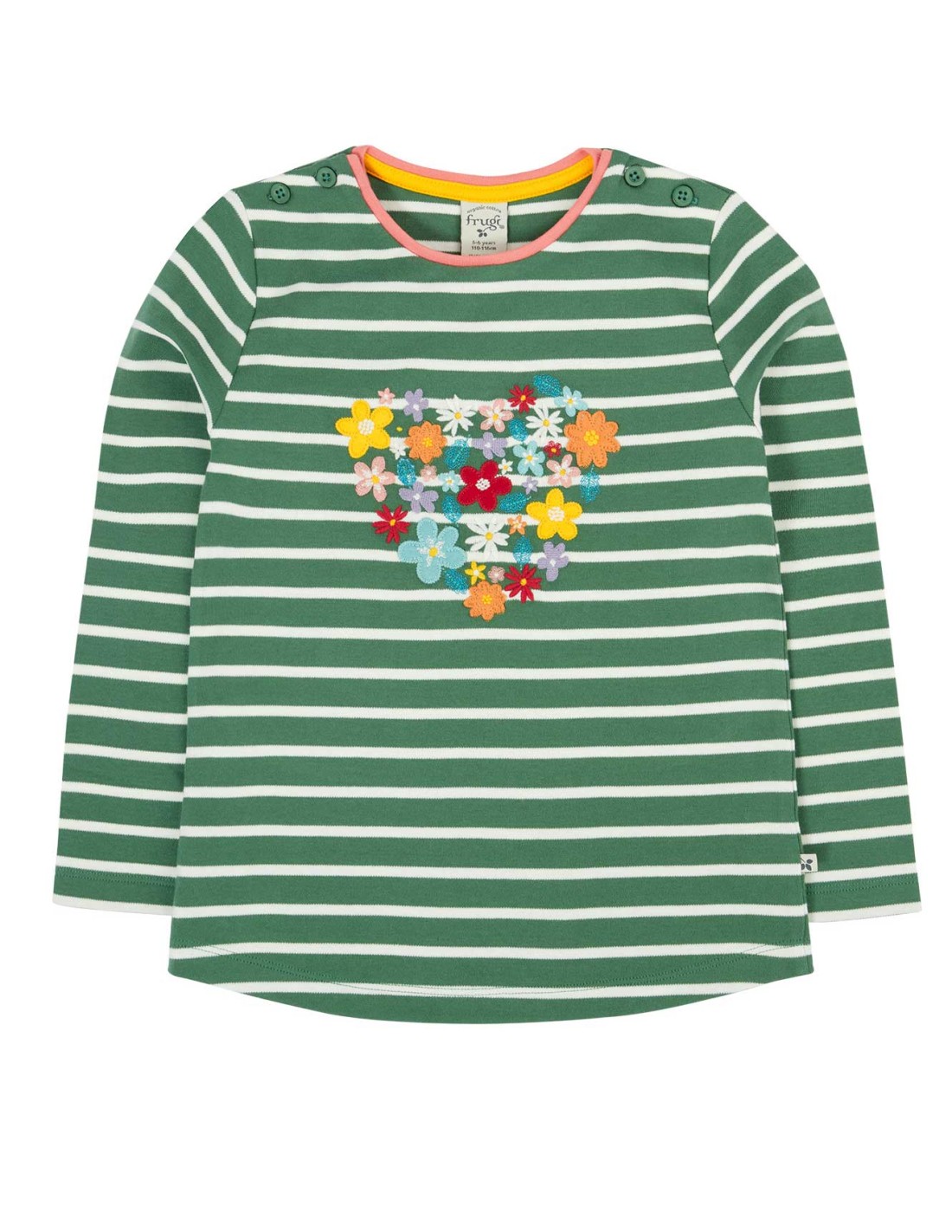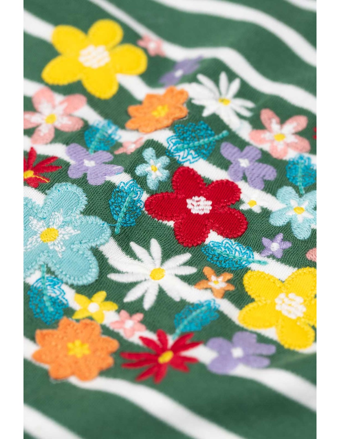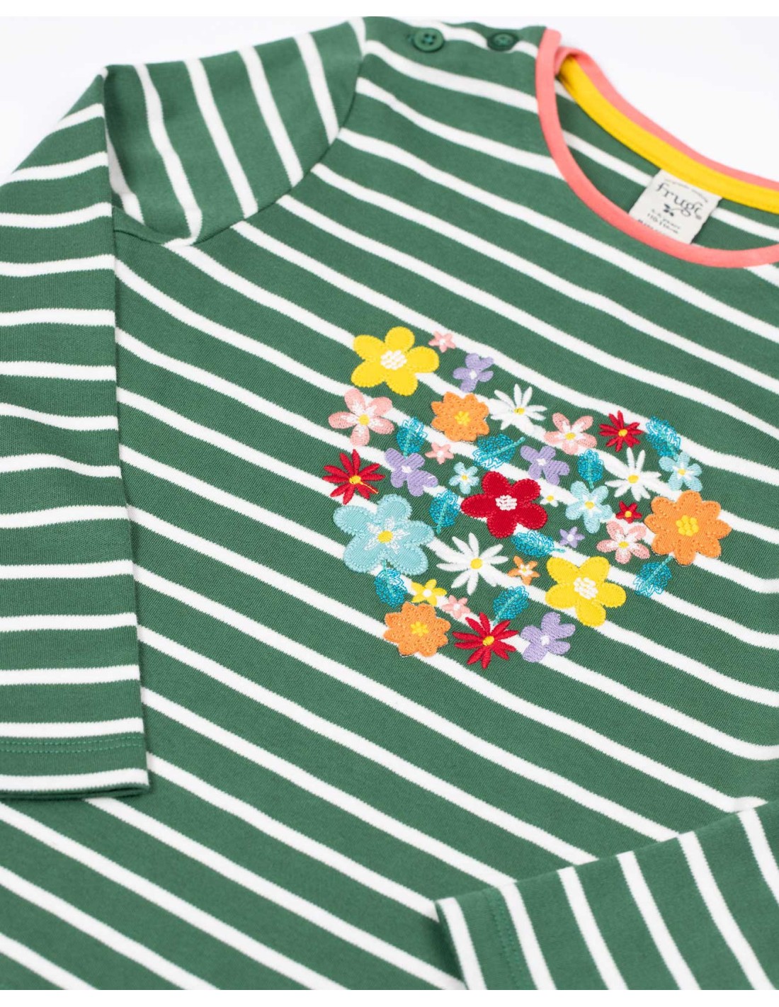 Il fronte è arricchito da una combinazione di ricami e applicazioni colorate, che donano un tocco vivace e femminile. Le maniche lunghe la rendono perfetta da indossare da sola o sotto felpe e cardigan. Il cotone è morbidissimo!