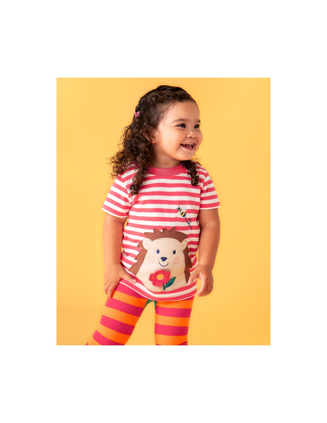 Una t-shirt allegra e morbidissima che diventa subito una delle preferite dei bambini. Questa t-shirt a righe con applicazione a riccio unisce comfort, colore e divertimento in un capo perfetto per accompagnare i più piccoli nelle loro giornate di gioco.