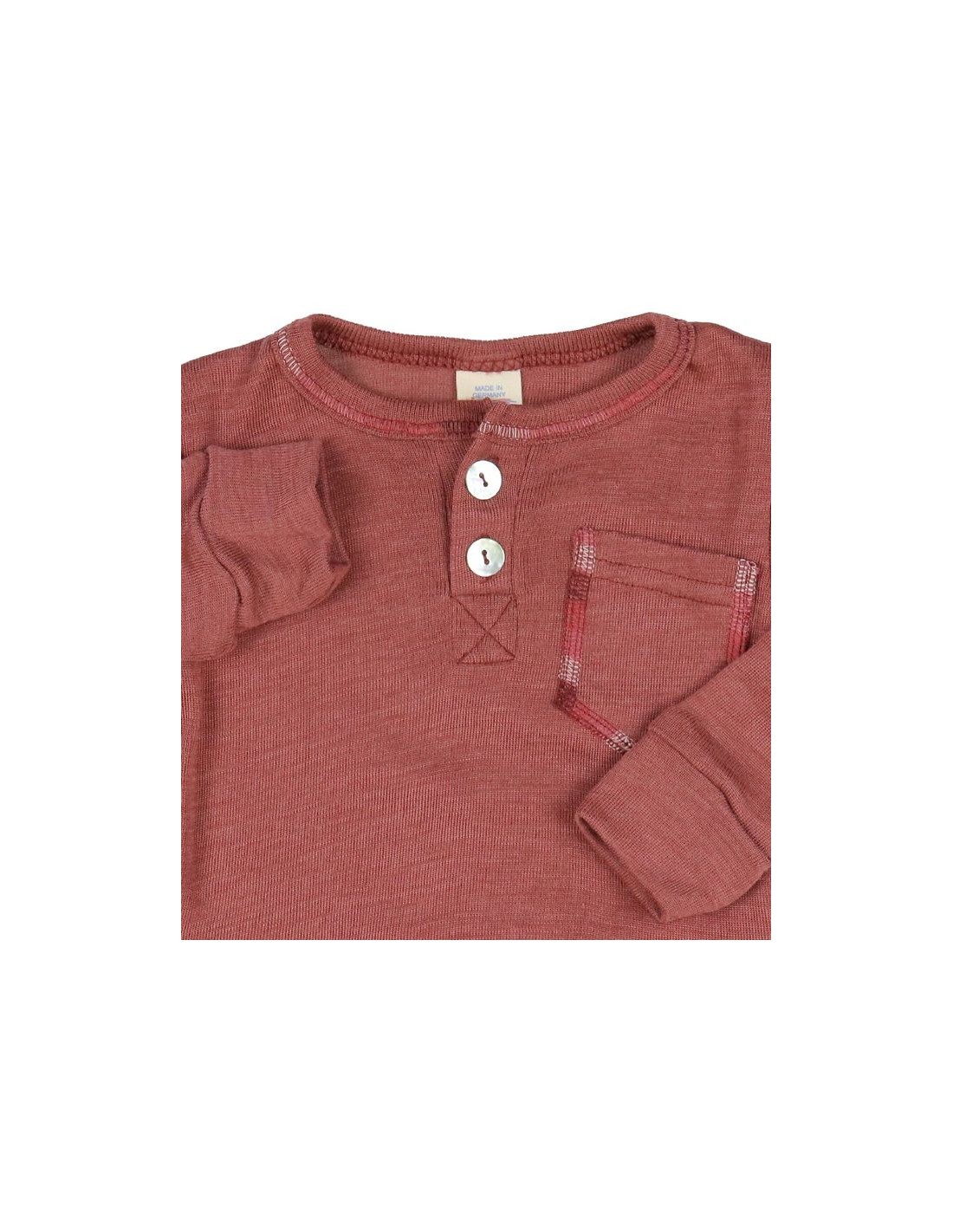 Maglia baby a manica lunga in lana-seta con bottoni, perfetta da indossare come calda T-shirt in autunno e in inverno, ideal per l'asilo non fa sudare e mantiene il corpo alla perfetta temperatura.