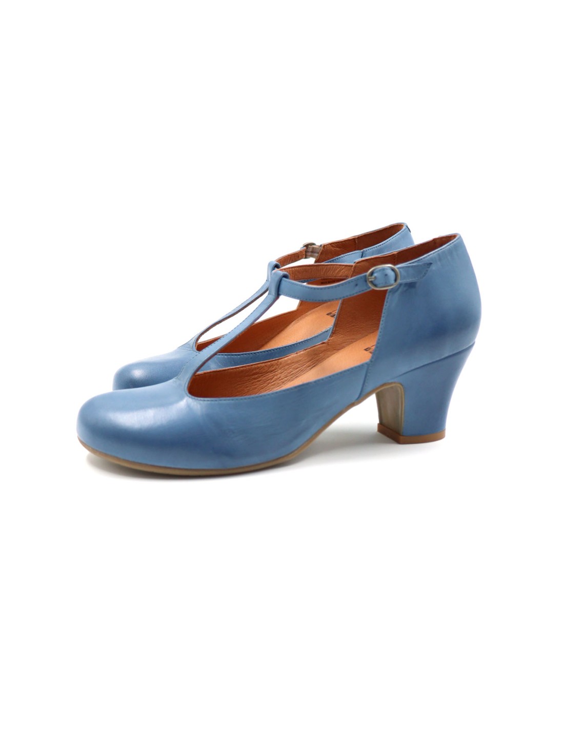 Deliziosa scarpetta mary-jane in stile vintage con cinturino, punta tonda e tacco 5 cm. Realizzata in pelle naturale chrome-free, comodissima.