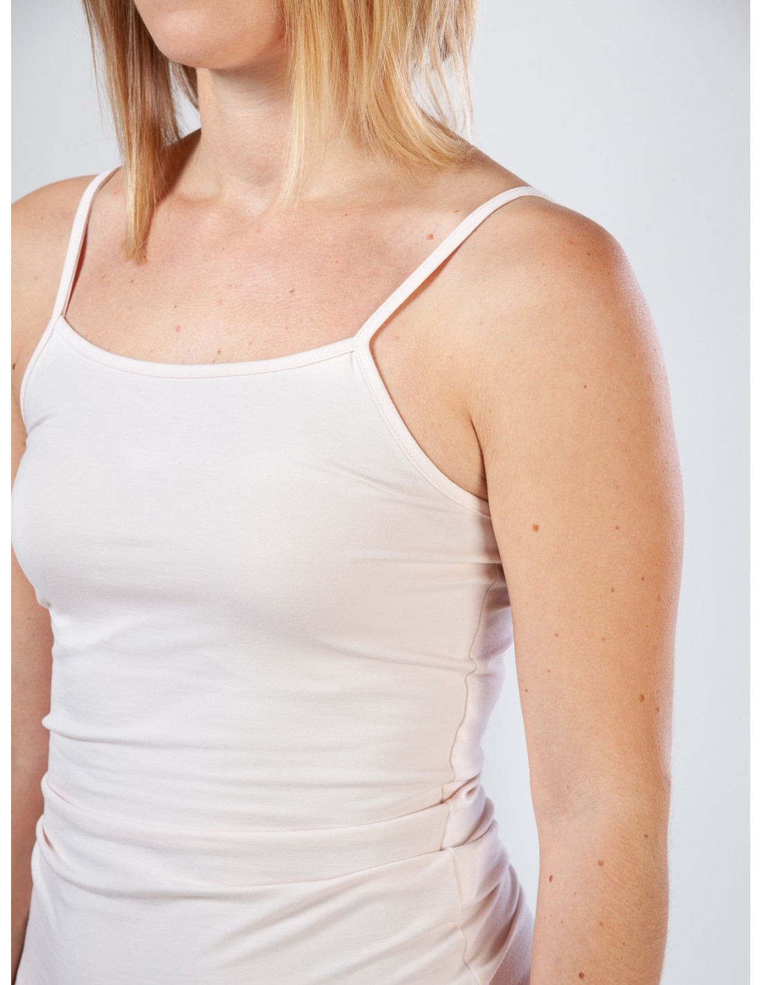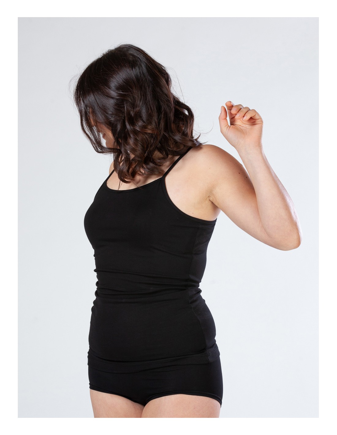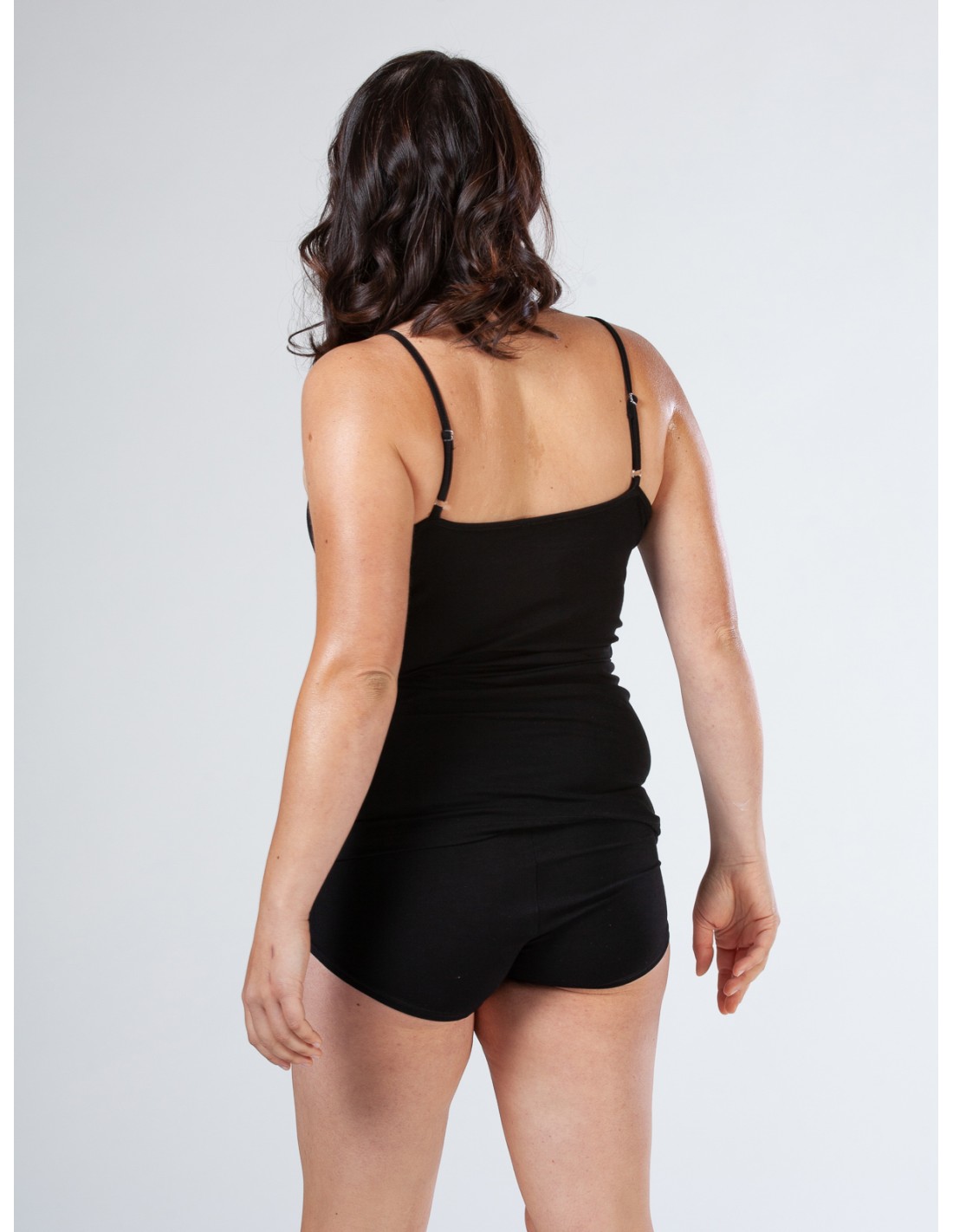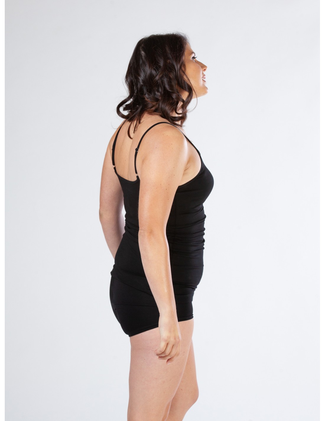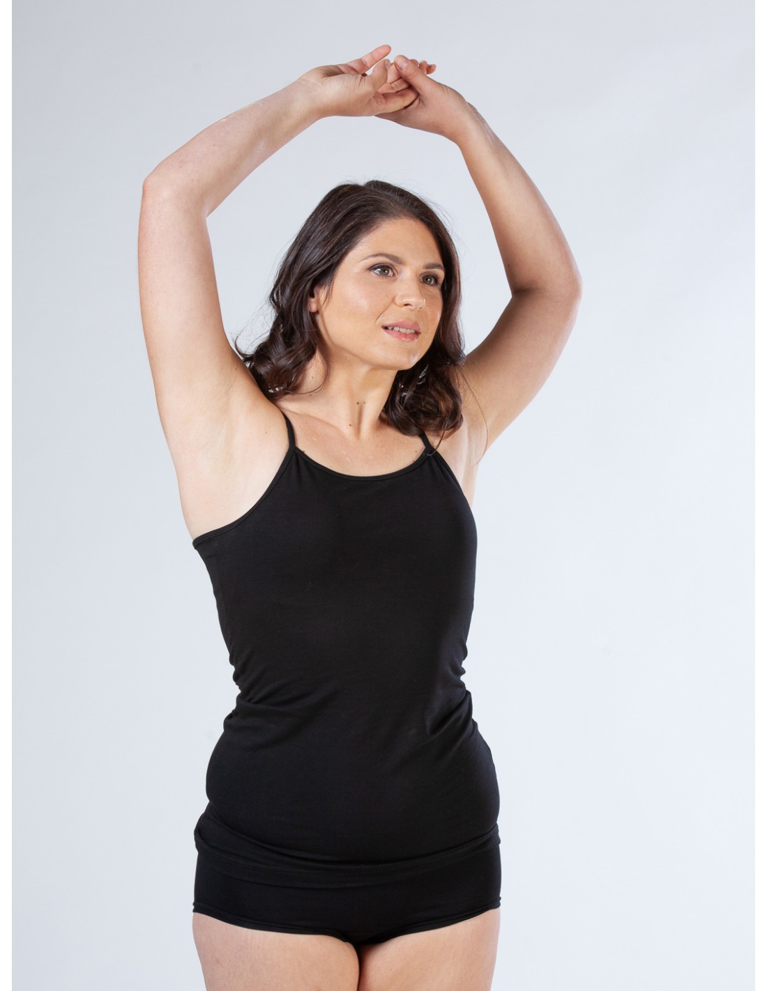 Comodissima e naturalmente elasticizzata questa canotta a spallina sottile e regolabile realizzata in morbidissimo Bambù.