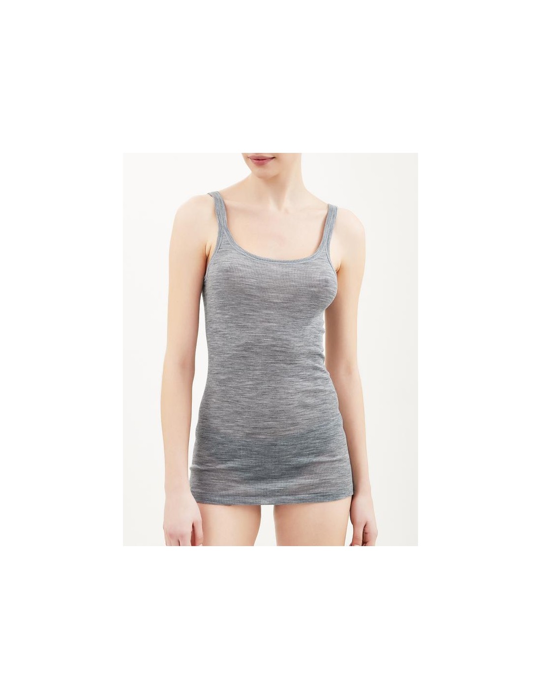Canotta Donna a spalla stretta in pura lana Merino a costina sottile.