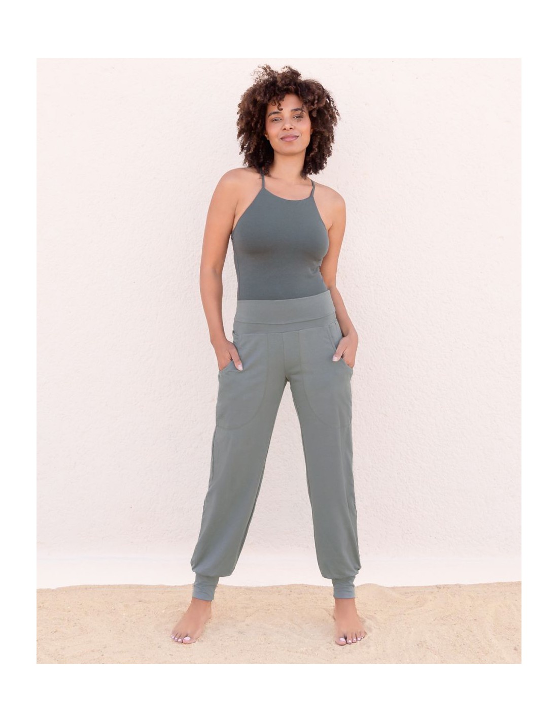 La linea è bodyfitted: segue le forme in modo naturale senza comprimere. Il cotone biologico è morbido, traspirante e delicato sulla pelle, perfetto quando si suda o si resta a lungo sul tappetino.