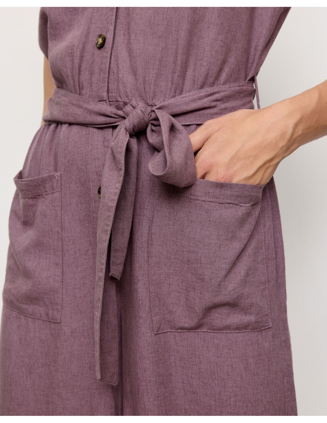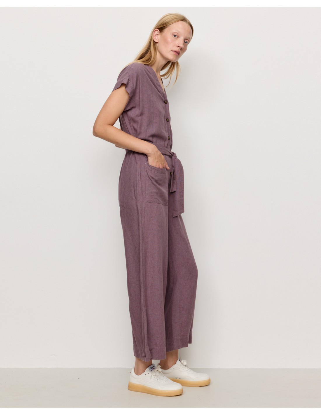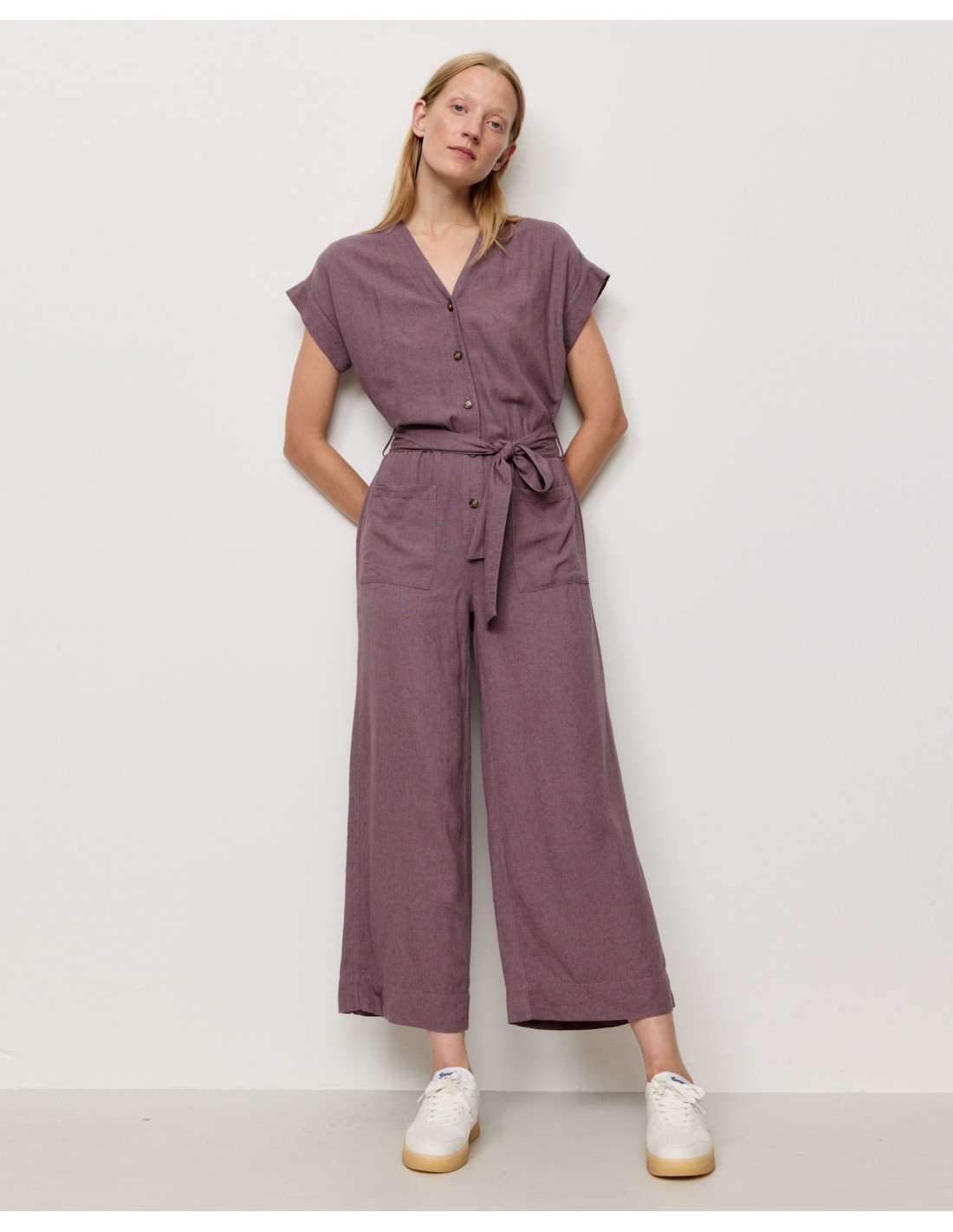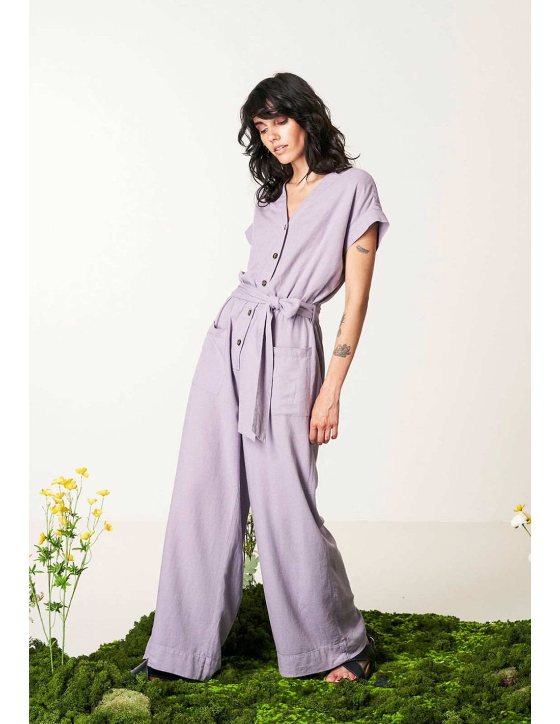 Bellissima e fluida tuta intera con cintura e pantaloni a palazzo realizzata in un morbido e fresco mix di Lino e Ecoviscosa Ecovero ™ LENZING ™. Un capo freschissimo ed elegante per la primavera e l'estate.