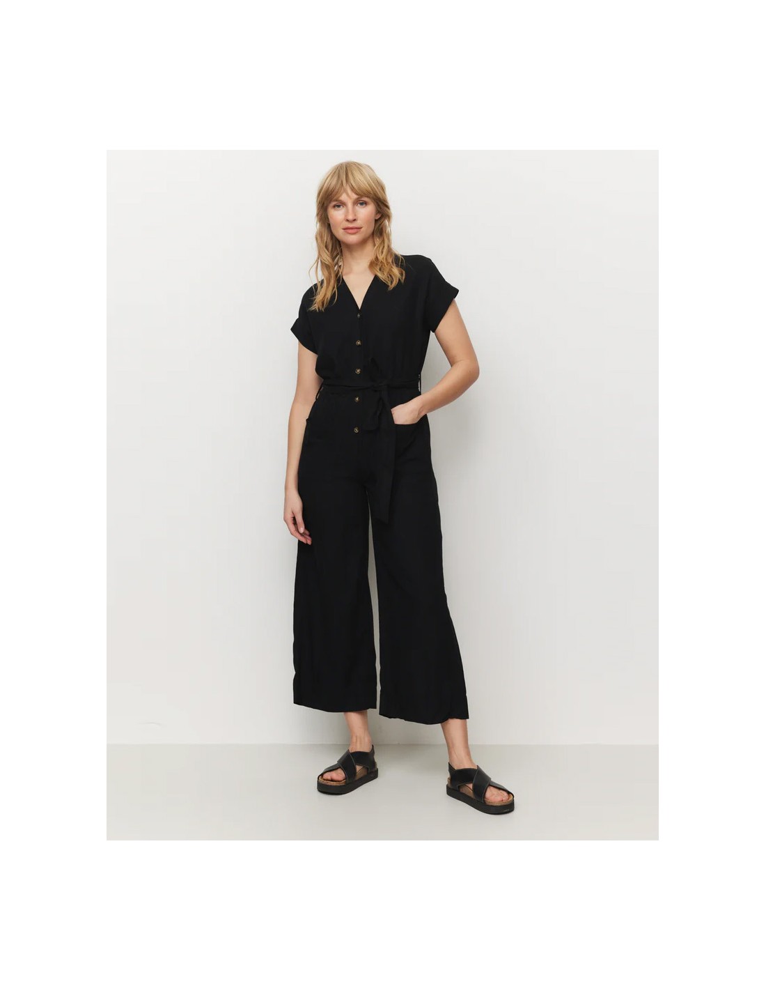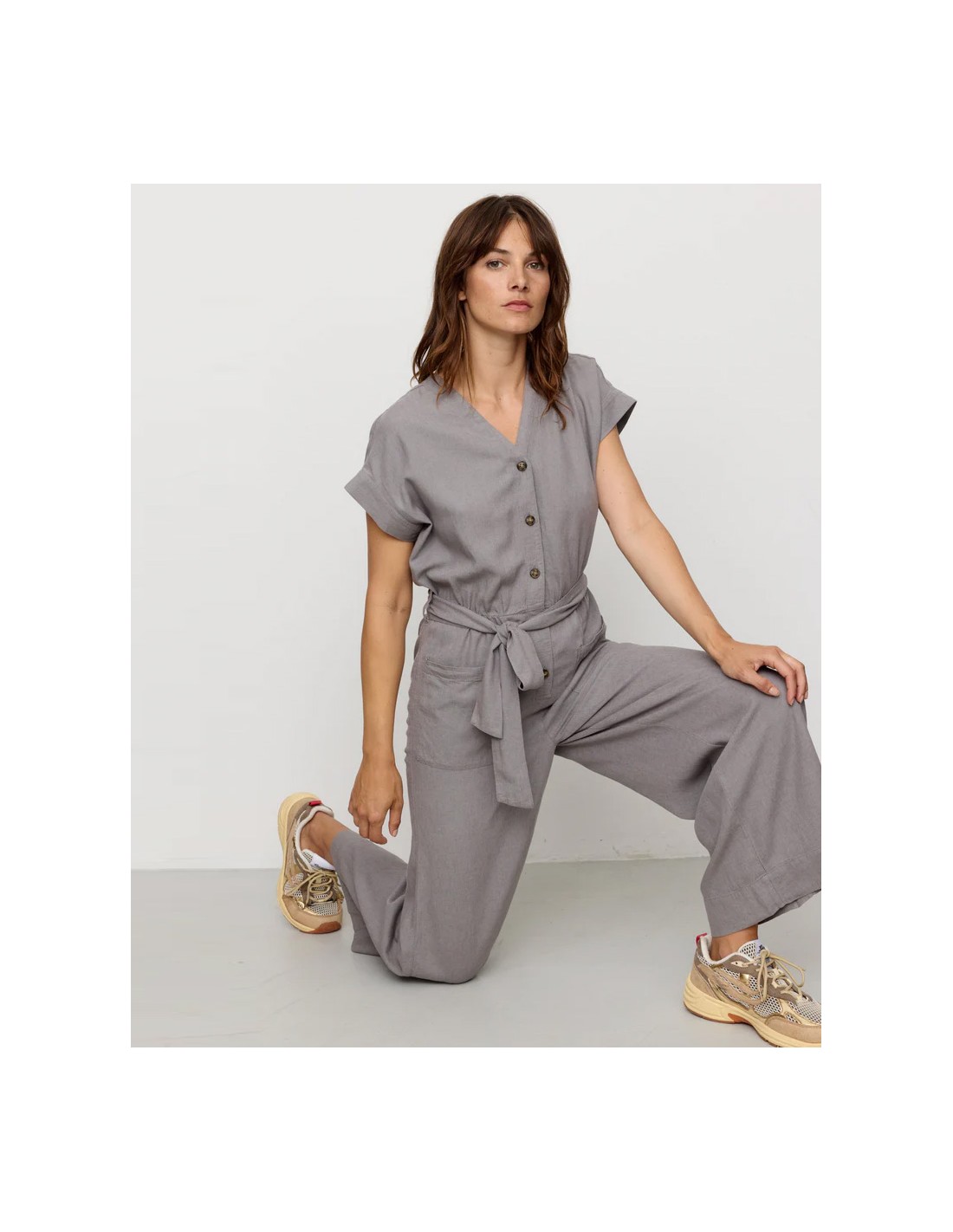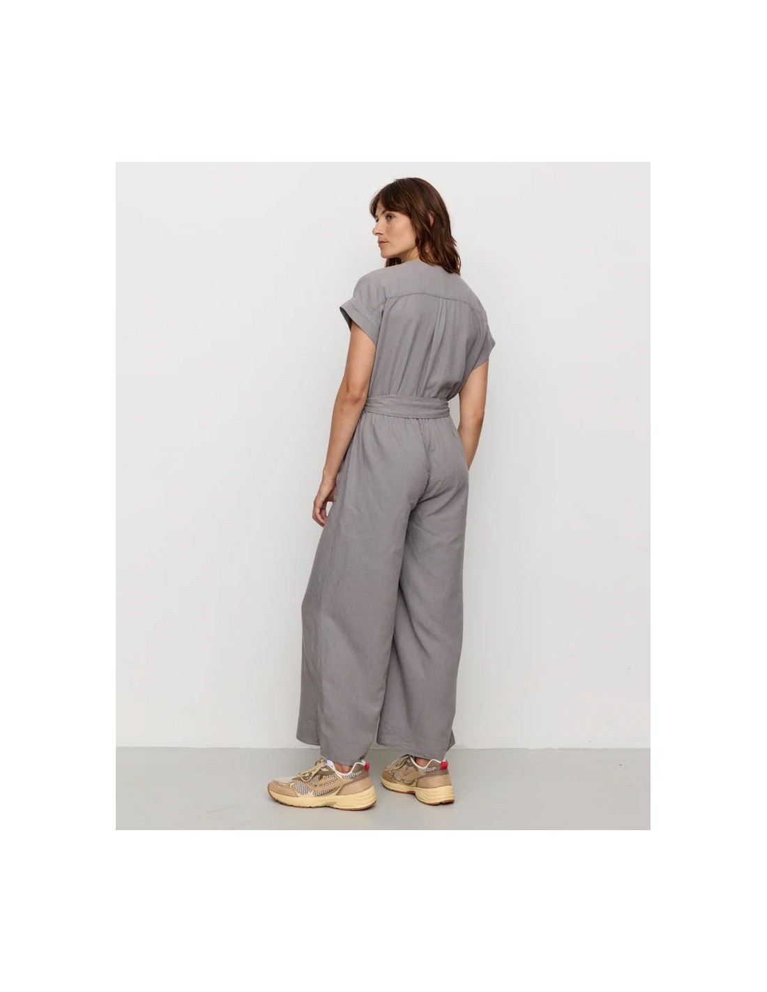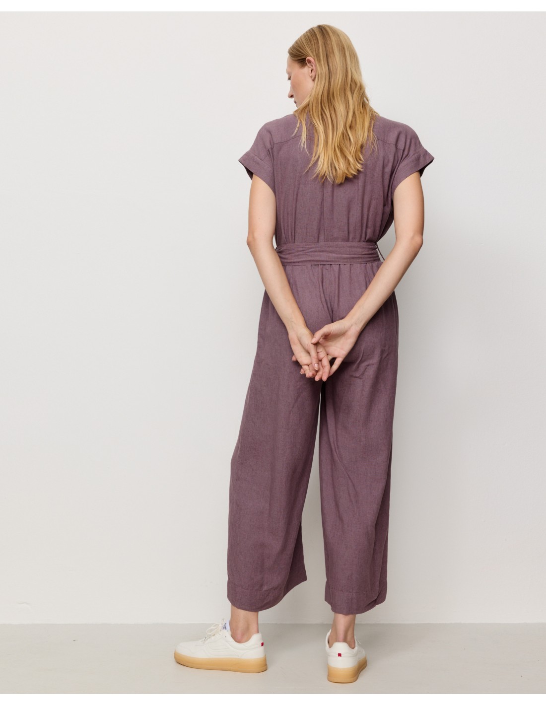 Bellissima e fluida tuta intera con cintura e pantaloni a palazzo realizzata in un morbido e fresco mix di Lino e Ecoviscosa Ecovero ™ LENZING ™. Un capo freschissimo ed elegante per la primavera e l'estate.