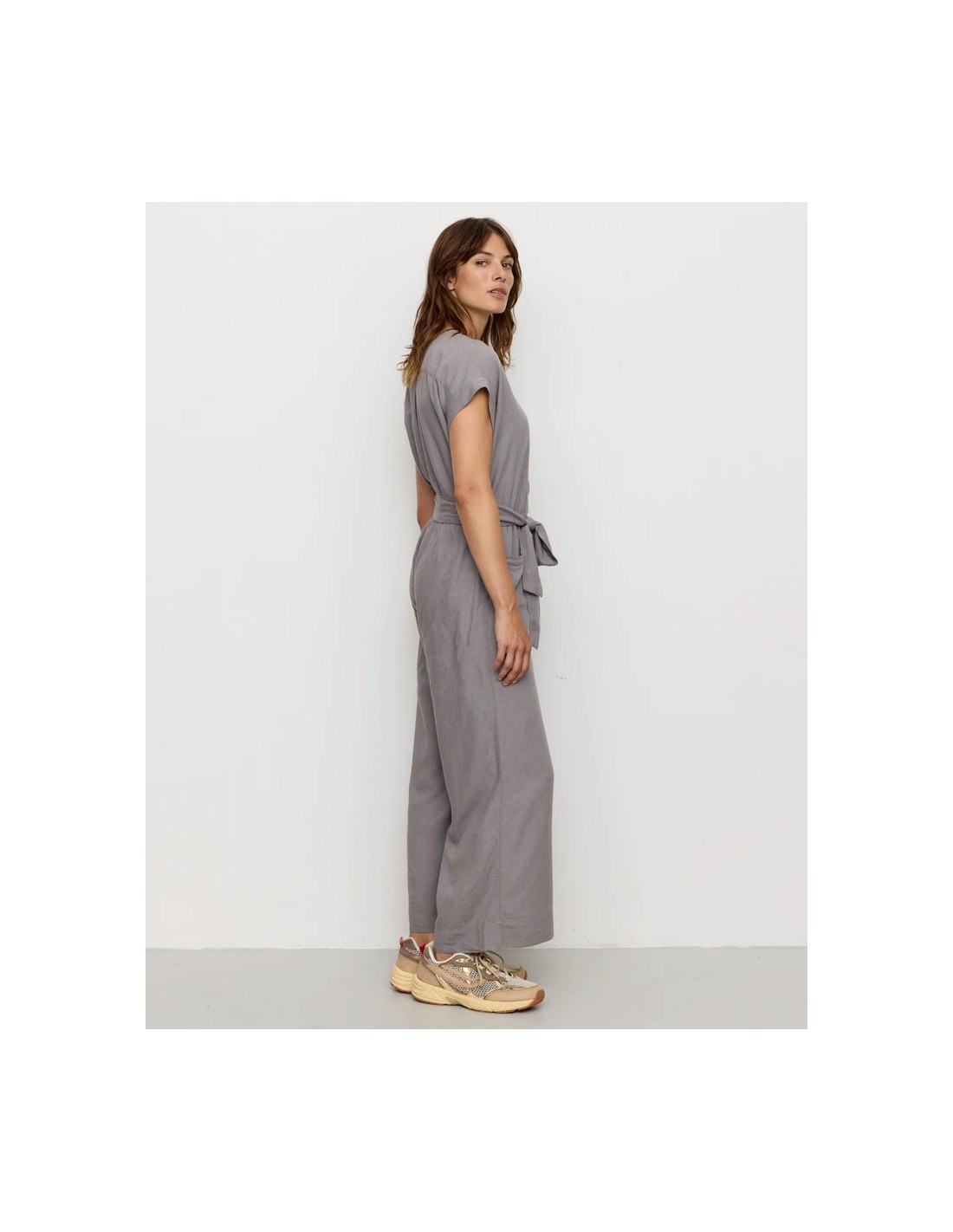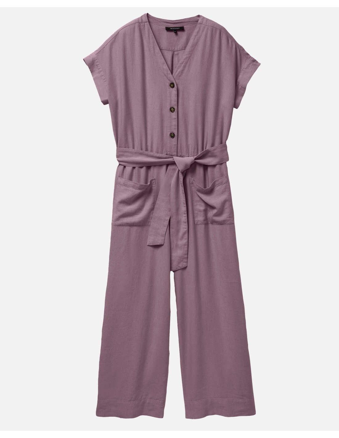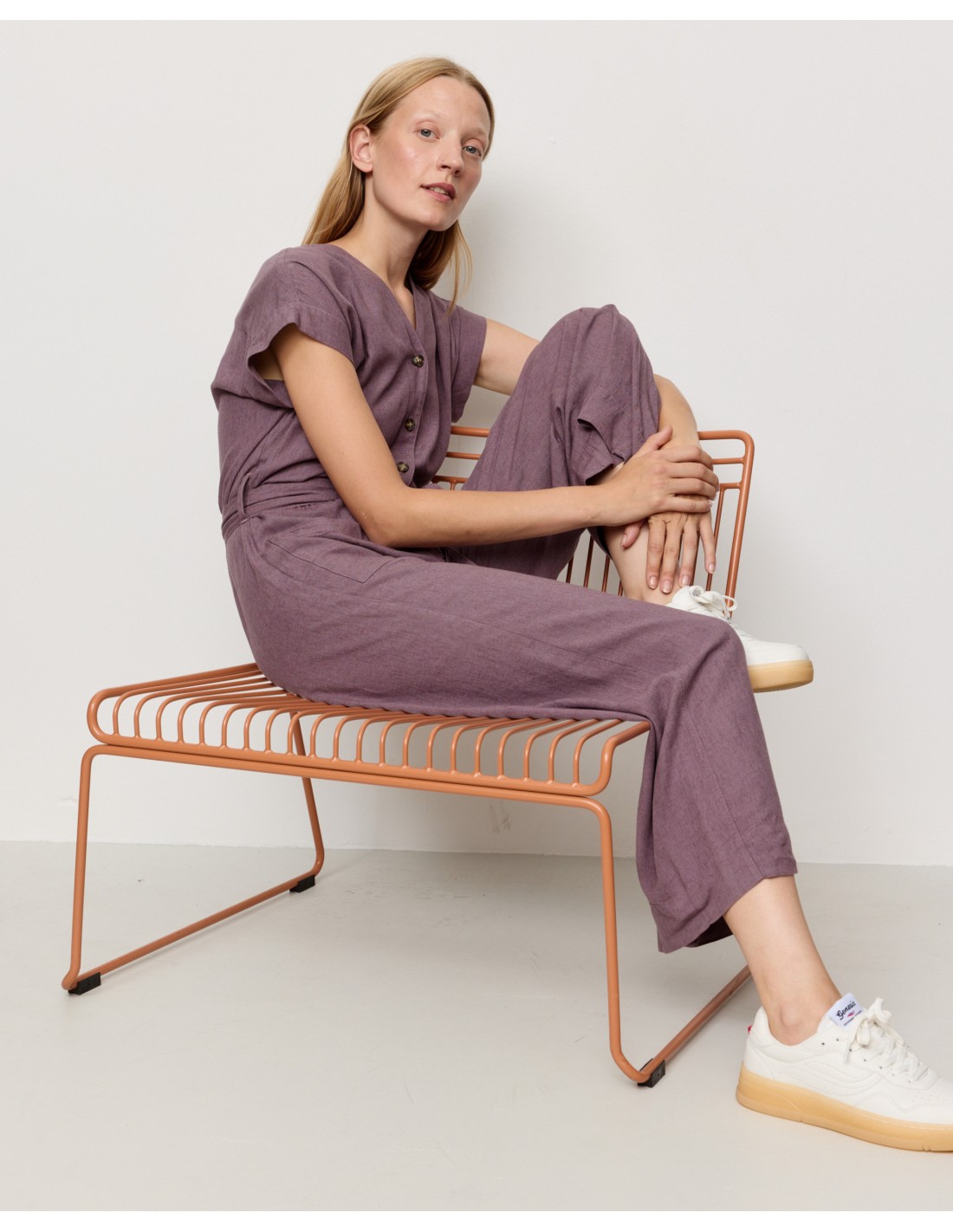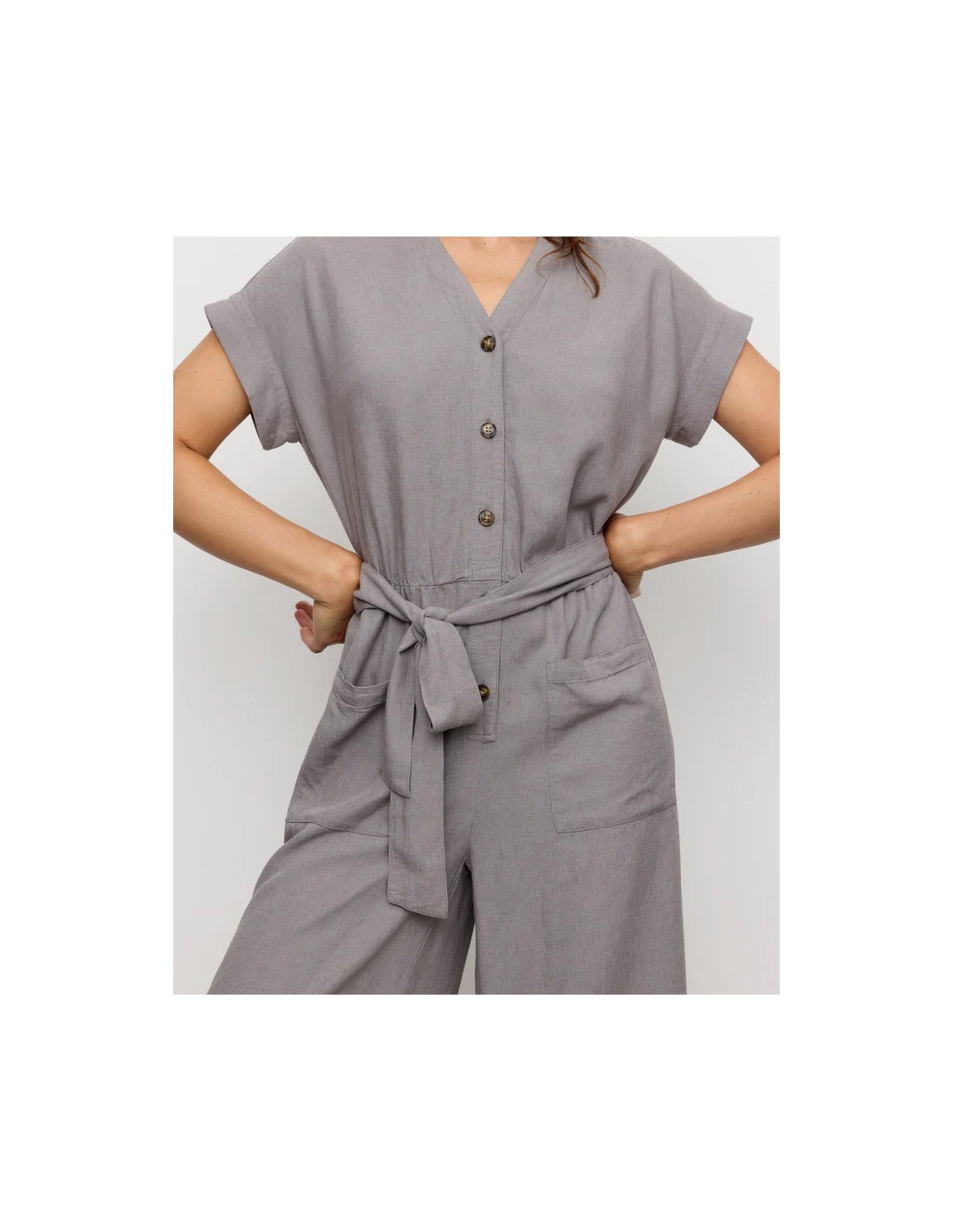 Bellissima e fluida tuta intera con cintura e pantaloni a palazzo realizzata in un morbido e fresco mix di Lino e Ecoviscosa Ecovero ™ LENZING ™. Un capo freschissimo ed elegante per la primavera e l'estate.