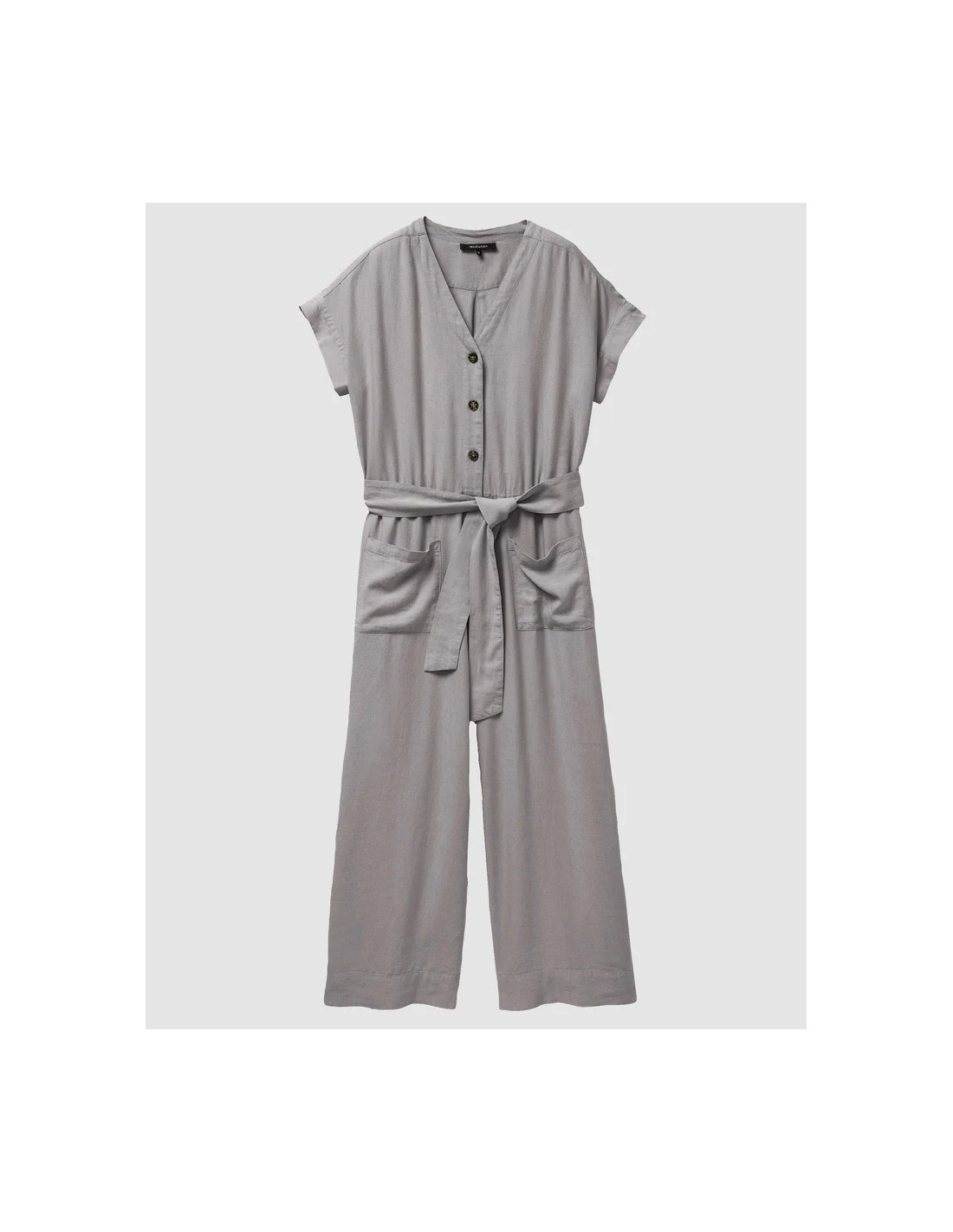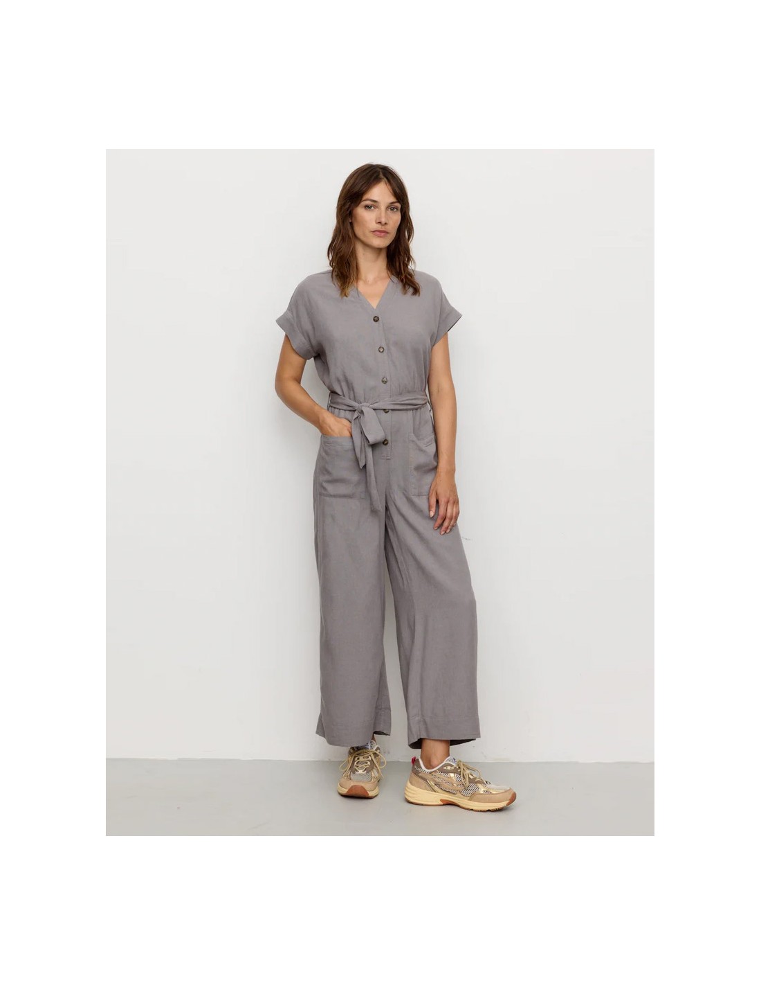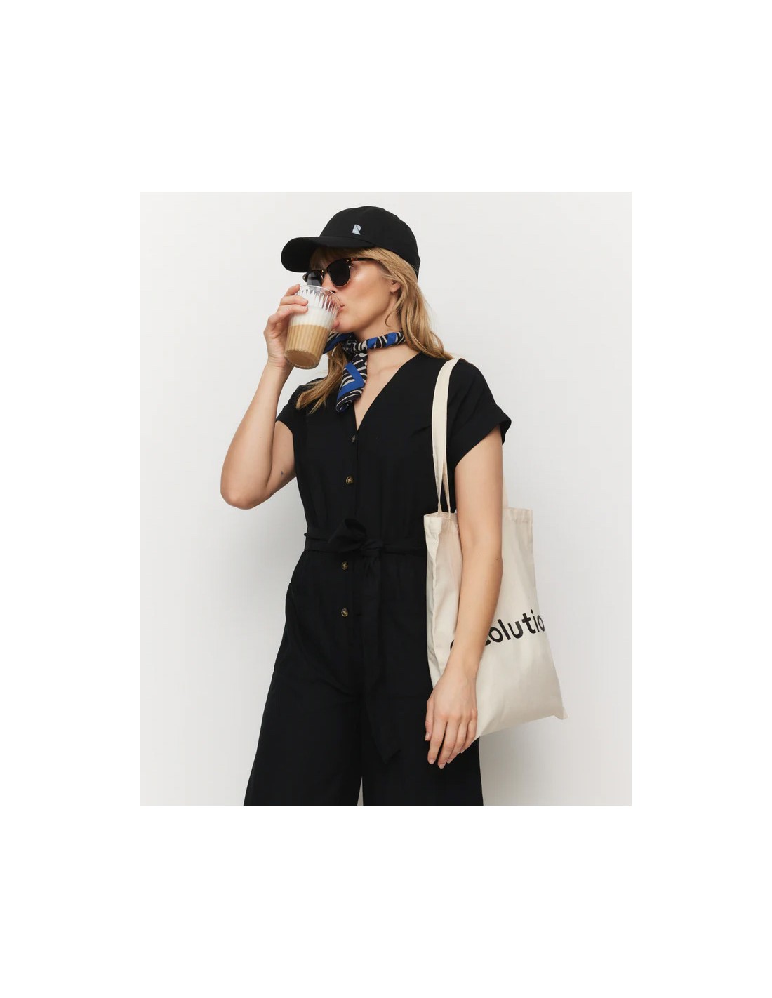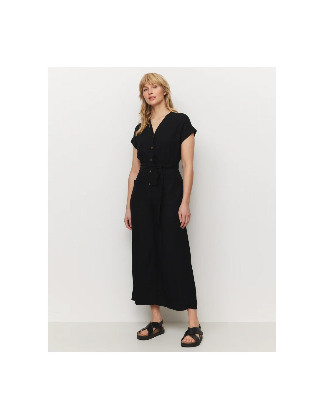 Bellissima e fluida tuta intera con cintura e pantaloni a palazzo realizzata in un morbido e fresco mix di Lino e Ecoviscosa Ecovero ™ LENZING ™. Un capo freschissimo ed elegante per la primavera e l'estate.