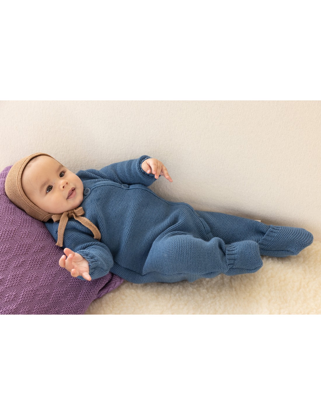Questa tutina in lana Tricot è come indossare un caldo maglioncino, perfetta sopra al body in pura seta o lana -seta a maniche lunghe. Abbinala a calzettini in Alpaca o Lana e alla copertina per donare il perfetto e naturale tepore al tuo bimbo.