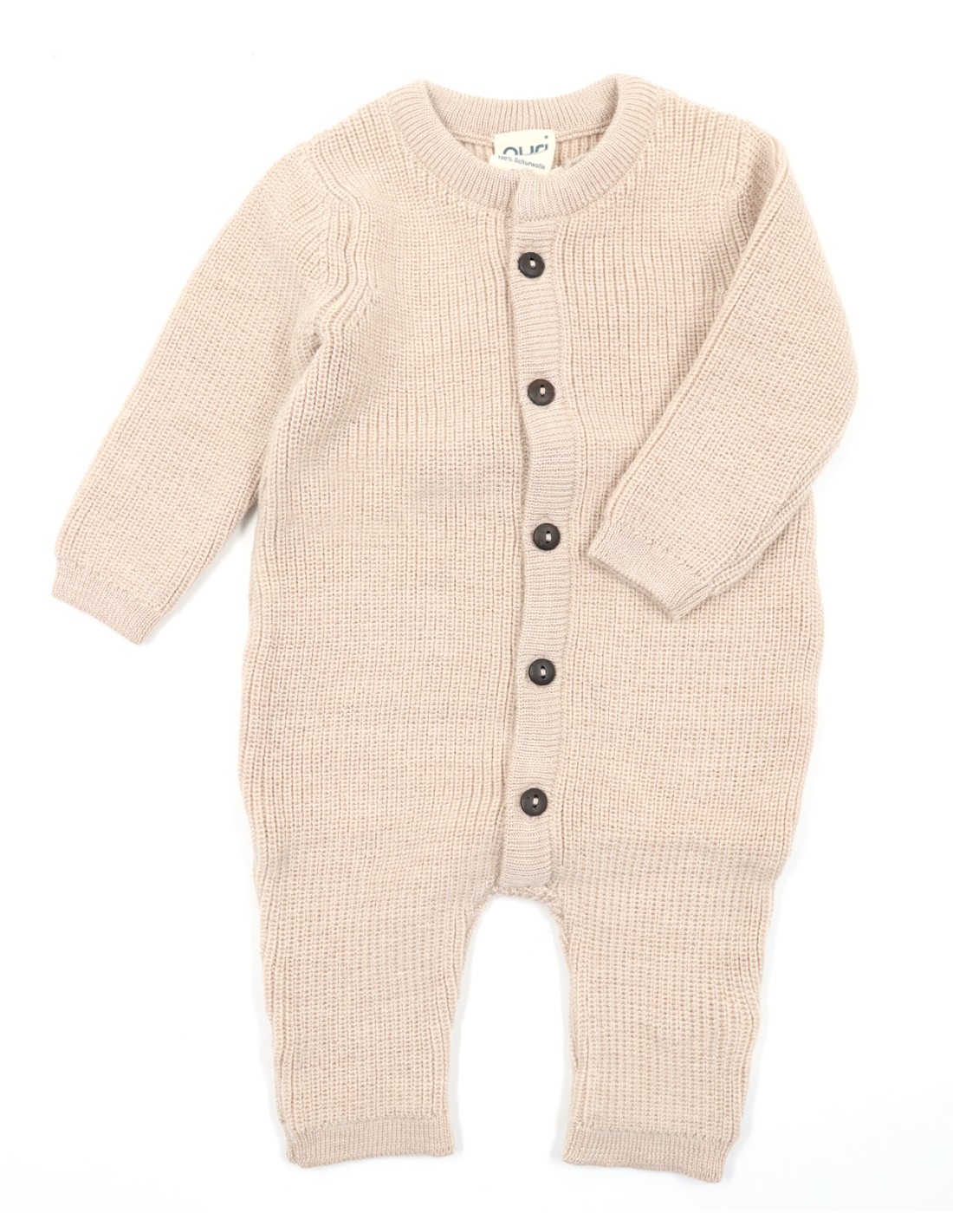 Tutina intera in pura lana merino biologica, calda ma traspirante, pensata per accogliere i neonati con la massima dolcezza naturale. La maglia tricot avvolge senza scaldare troppo, l’abbottonatura lunga frontale rende ogni cambio semplice e delicato. Modello senza piedini per accompagnare la crescita.