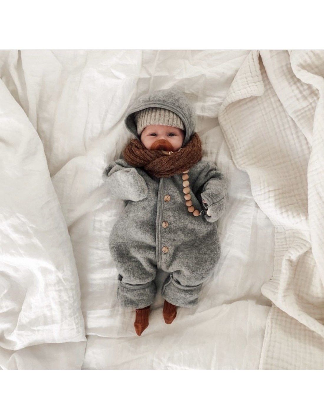 Una tutona realizzata interamente in Pura Lana Merino Biologica con lavorazione "Pile di Lana" un tessuto estremamente soffice, morbidissimo e leggero, quasi vaporoso. Non pizzica, ideale per neonati e bimbi con la pelle sensibile.