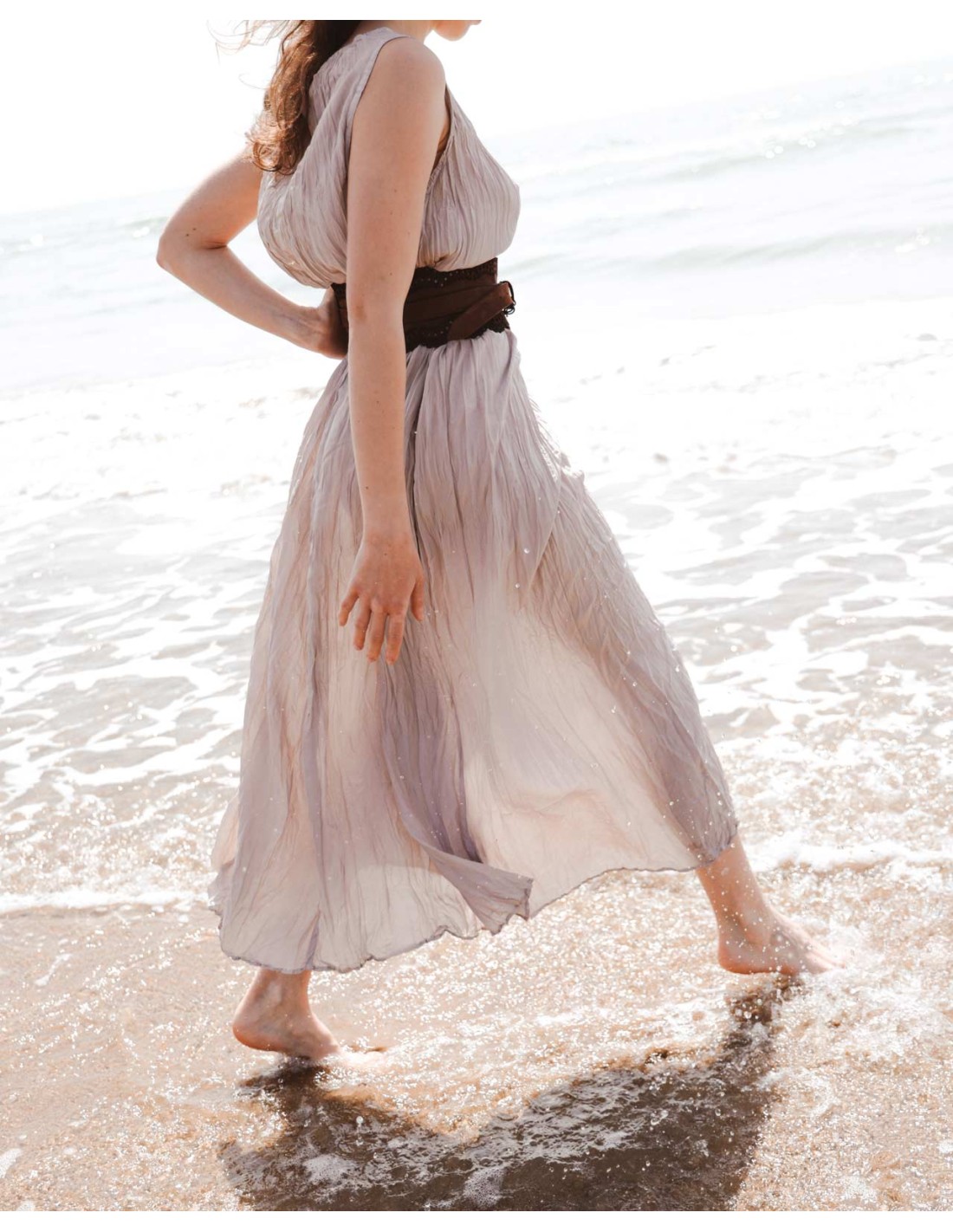 Bellissimo abito lungo alla caviglia in purissima Seta ad effetto volutamente stropicciato. Volendo il tessuto si può stirare perfettamente.