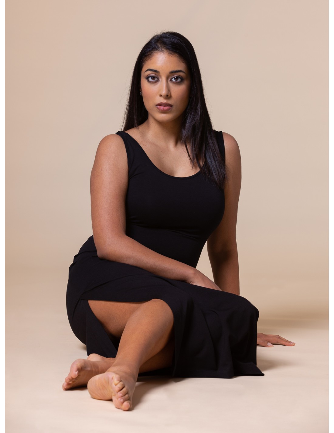 Semplice e comodissimo abito slim fit smanicato realizzato in morbido ed elastico Jersey di bambù.