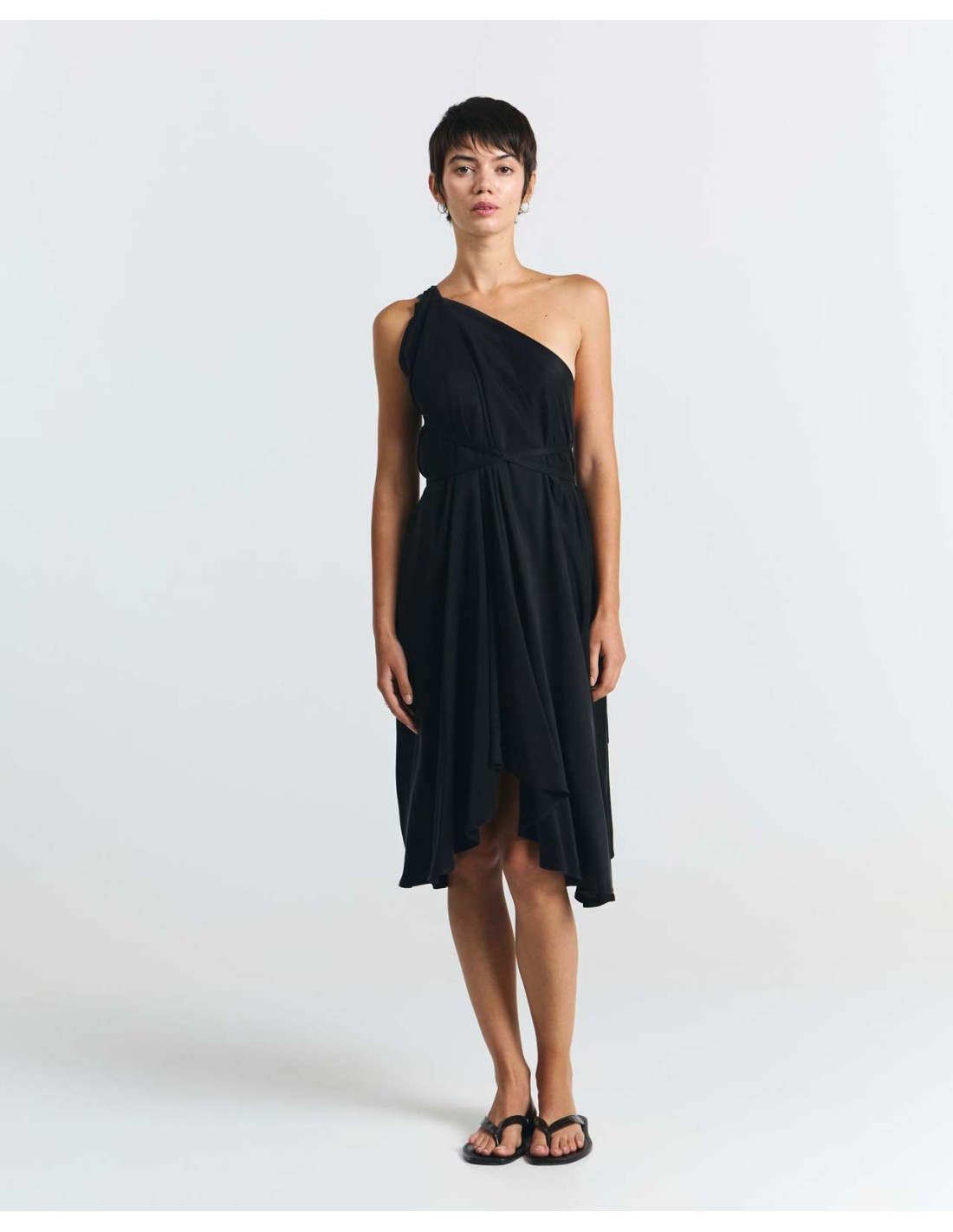 La Bellezza di questo abito è che può essere indossato in ben 5 modi diversi! L'abito infatti (senza taglia) ha un'ampia gonna e due semplici spalline che permettono di giocare con questo modello ed indossarlo in molti modi diversi, creando look casual, eleganti, scanzonati o chic..