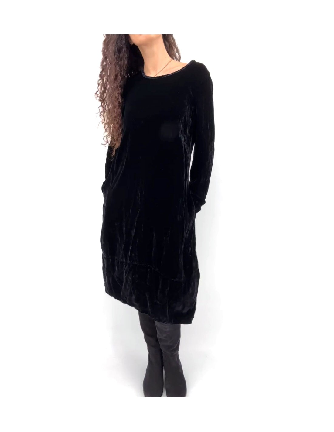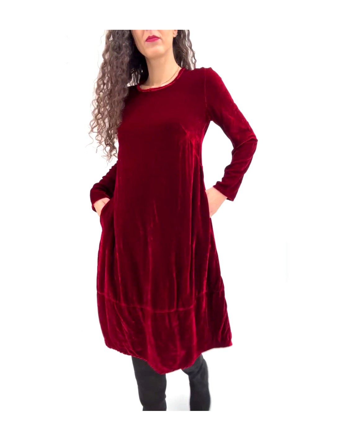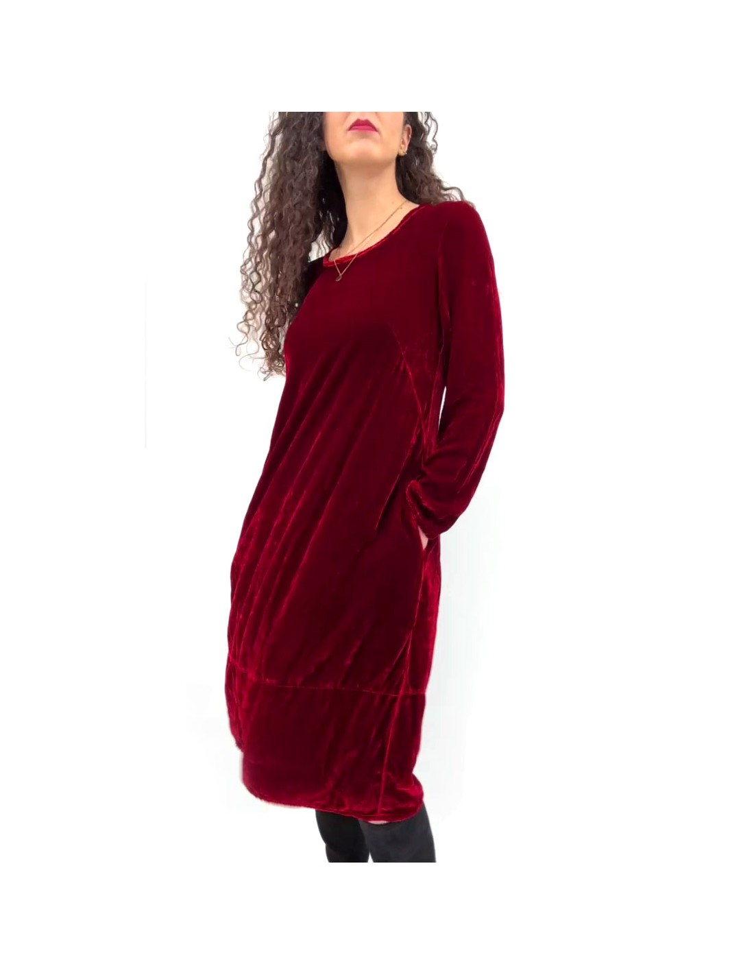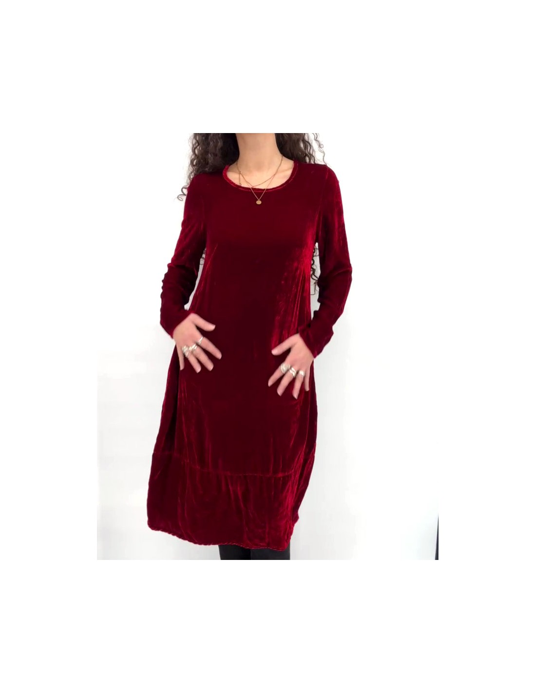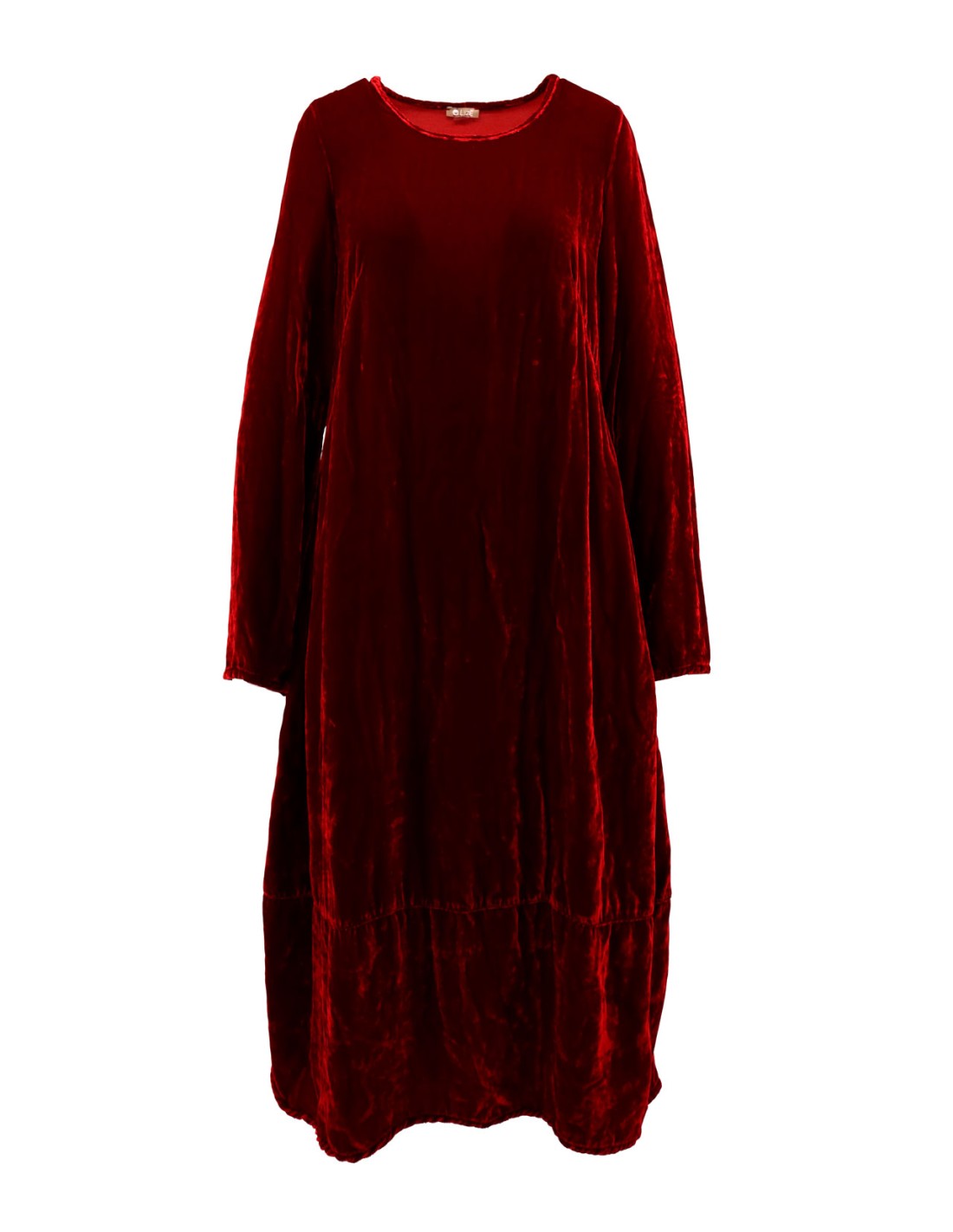 Un abito elegante e incredibilmente confortevole in velluto di seta ed ecoviscosa. Morbido, caldo e leggermente elasticizzato, scivola sul corpo senza segnare. Girocollo, maniche lunghe e gonna midi con forma delicatamente a palloncino. Perfetto per l’inverno e per le occasioni speciali, anche quando vuoi sentirti comoda.